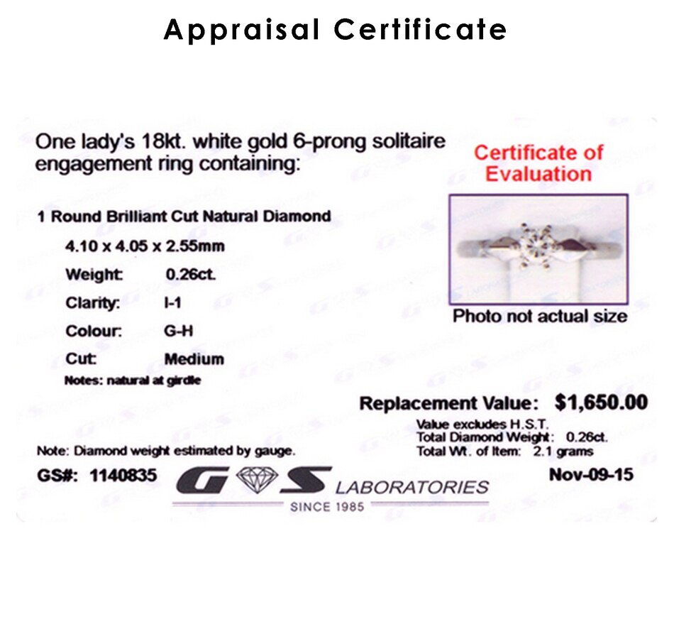 • Estate Originals Ladies' 18K White Gold 6-Prongs .26 Carat Diamond Solitaire Ring