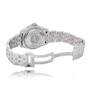This lady's stainless steel BREITLING 1884 CHRONOMETRE OFFICIELLEMENT CERTIFIE Windrider Cockpit Swiss made wrist watch has a 32mm case diameter, a round shaped mother-of-pearl dial and metallic and luminescent hands. A date window appears at the 3 o'clock position and all other eleven hours are marked with diamonds and a sapphire crystal protects the dial. It runs on a 71 caliber quartz movement and is water resistant to 100M/330FT. The model # A71356, case # 983612. The watch is attached to a stainless steel Swiss made bracelet with deployment buckle signed, BREITLING. The 51 diamonds in the bezel plus the eleven on the dial combine for .58 carats.