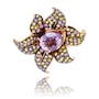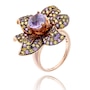LeVian 14K Rose Gold 2.96 Carat Pear Shaped Kunzite Flower Ring with Pink and Yellow Sapphires