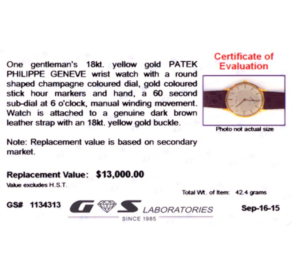 • Estate Originals Gentlemen's Patek Philippe Geneve Wristwatch in 18K Yellow Gold