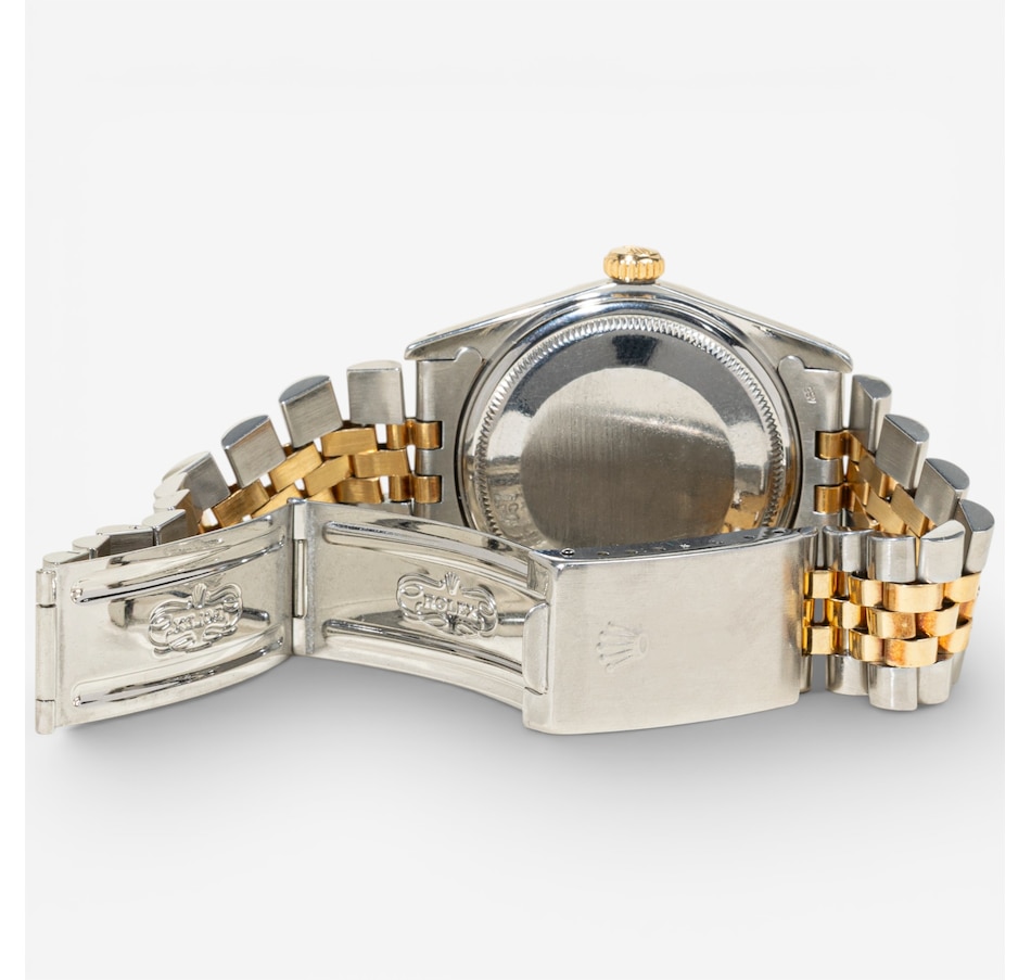Known for its accuracy, durability, and ease of service, this 31-jewel movement delivers a 42-hour power reserve and has long been considered one of Rolex’s most reliable calibers. Completing the piece is the iconic Jubilee bracelet, presented here in bi-metal stainless steel and 18K yellow gold. Introduced in 1945 alongside the first Datejust, the Jubilee bracelet is celebrated for its supple five-link construction, exceptional comfort, and elegant drape on the wrist. A secure steel fold clasp ensures a refined and functional fit.