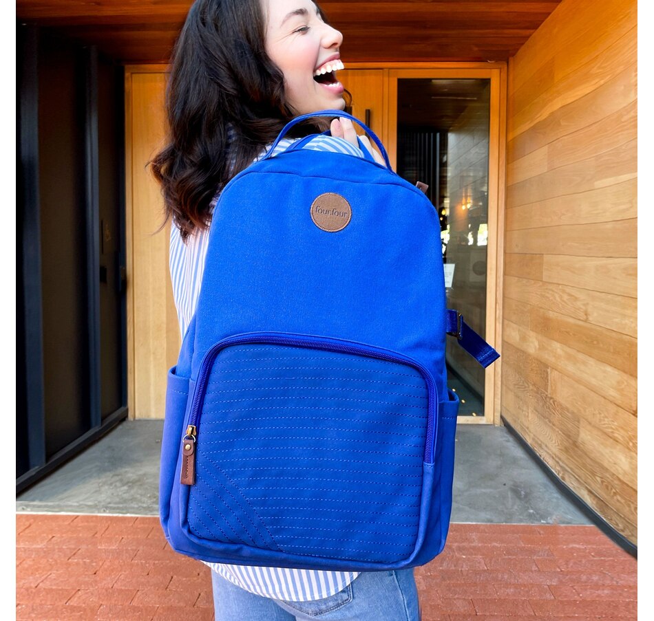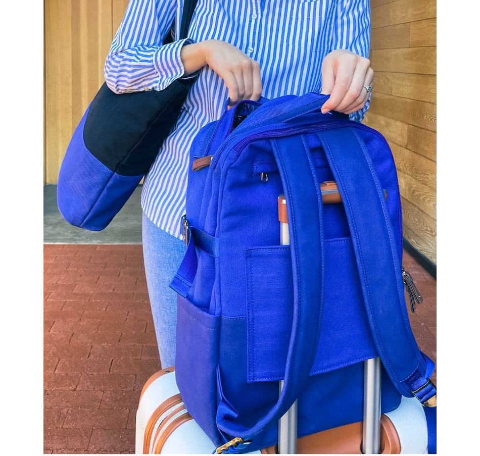Your browser does not support our video.Eternal Optimist Cobalt Blue Backpack - Good To GoUnwavering Optimism, Stylishly EmbodiedIntroducing the Eternal Optimist Cobalt Blue Backpack - your travel ultimate companion for embracing life's adventures with unyielding positivity and style. Crafted with meticulous attention to detail, this everyday backpack is not just a bag; it's a statement of optimism, resilience, and readiness to seize every opportunity that comes your way while looking cute.Vibrant Cobalt Blue AestheticImbued with a vibrant cobalt blue hue, this backpack instantly captivates with its bold and uplifting aesthetic. The color symbolizes confidence, creativity, and a boundless spirit, setting the tone for your journeys ahead.Durable Construction, Reliable PerformanceConstructed from high-quality materials, the Eternal Optimist Backpack offers durability that withstands the test of time. Whether you're navigating bustling city streets, trekking through rugged landscapes, or embarking on spontaneous getaways, this backpack ensures your essentials remain secure and protected.Thoughtful Design for Maximum OrganizationVersatility meets functionality with thoughtfully designed compartments and pockets, providing ample space to organize your belongings efficiently. From laptops and textbooks to water bottles and snacks, everything has its designated place, keeping you prepared everyday for whatever the day brings.Comfortable Carrying, All-Day SupportComfort is paramount, and the Eternal Optimist Backpack delivers with adjustable padded shoulder straps that offer a customized fit, even during extended wear. Say goodbye to discomfort and hello to effortless carrying, allowing you to focus on embracing each moment with unwavering positivity.A Symbol of Empowerment and PositivityBut this backpack is more than just a practical accessory; it's a symbol of optimism and empowerment. Its name, "Eternal Optimist," serves as a reminder to approach life with an open heart and a positive outlook, no matter the challenges you may face.Your Trusted Companion for Every AdventureWhether you're embarking on a new chapter of your academic journey, exploring unfamiliar destinations, or simply navigating the adventures of everyday life, the Eternal Optimist Cobalt Blue Backpack is your trusted companion, empowering you to embrace each day with enthusiasm, resilience, and an unwavering belief in the power of optimism. Good to go? Absolutely.Fabric/ Care:100% Cotton Canvas (Exterior)100% Faux Vegan Suede (Exterior)100% Polyester (Interior)Eternal Optimist Blue (Color)Machine wash cold, tumble dry on low heat or line drySize:18"H x 6"D x 12"W22 LitersWeight 2.17 lbs