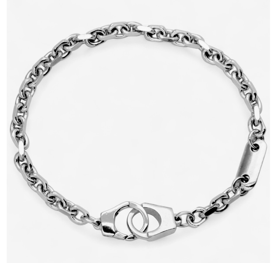 Add a touch of intrigue to your wrist with this sterling silver diamond-cut cable chain bracelet from Ethos. Finished in radiant rhodium plating, the shimmering diamond-cut texture catches the light beautifully, while the custom handcuff clasp adds a bold, distinctive detail. Measuring 8 1/2" in length, this piece blends modern style with lasting sophistication.