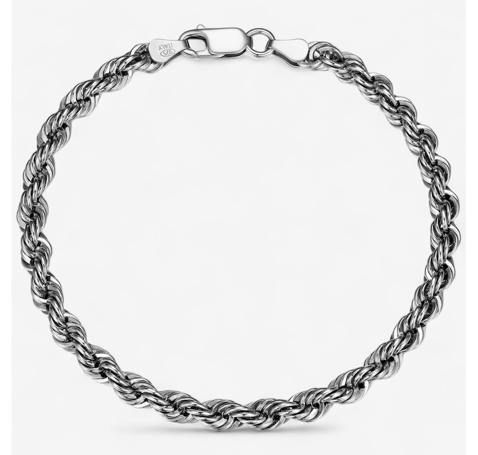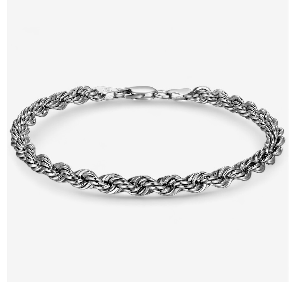 Sterling Silver Silk Rope Chain With Rhodium Plating Bracelet