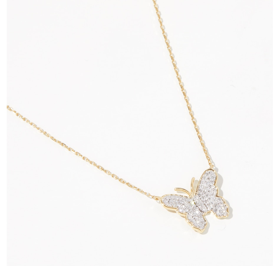 14K Gold 0.33ctw Diamond Butterfly Pendant Necklace