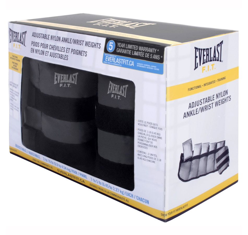 The best multi-functional tool for upper and lower body strengthening. Everlast's Adjustable 2-10 Pound Ankle and Wrist Weights target the upper and lower body, fastening around the wrists or ankles for excellent muscle-building results. Target the upper and lower body for a revolutionary strength training workout using Everlast's Adjustable 2 to 10-Pound Ankle and Wrist Weights. You can customize your exercising to suit your level of strength, lifting anywhere from 2 to 10 pounds total. The individual 1-pound weights slip securely into the pockets while the grip-strips fasten around the ankles and wrists to your desired fit.
