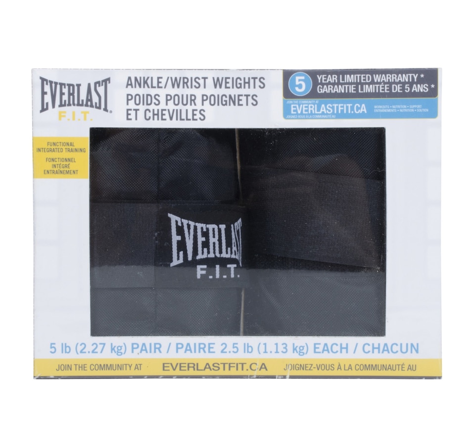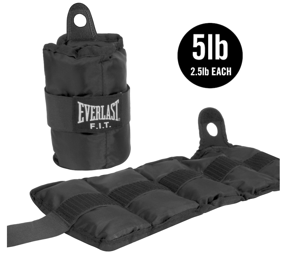 The best multi-functional tool for upper and lower body strengthening. Everlast's 5-Pound Ankle and Wrist Weights target the upper and lower body, fastening around the wrists or ankles for excellent muscle-building results. Building more muscle will not only make your cardio sessions easier but help you burn extra calories while doing aerobic conditioning. Target the upper and lower body for a revolutionary strength training workout using Everlast's 5-Pound Ankle and Wrist Weights. Its grip-strips can be securely fastened around the ankles and wrists to your desired fit. For added lifting support, use the thumb loops, keeping your fists in their proper form. These one-size fits most weights will help you strengthen and tone the biceps, triceps, hips, thighs and calves.