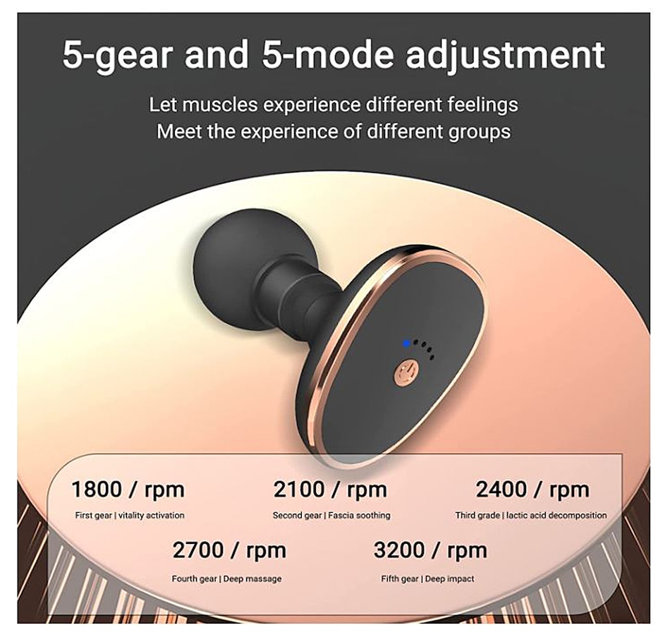 With five speeds and up to 3200 percussions per minute, it can help you relieve muscle stiffness, tightness, and activates the nervous system and muscles. It's great for relaxing muscles after exercise. It's also whisper quiet at 45dB, even at the highest speed. You can use it at home, the gym and the office without worrying about disturbing people around you.