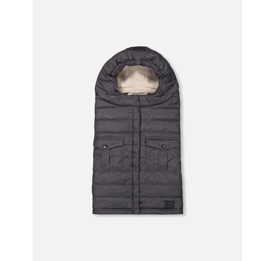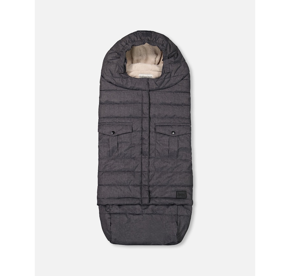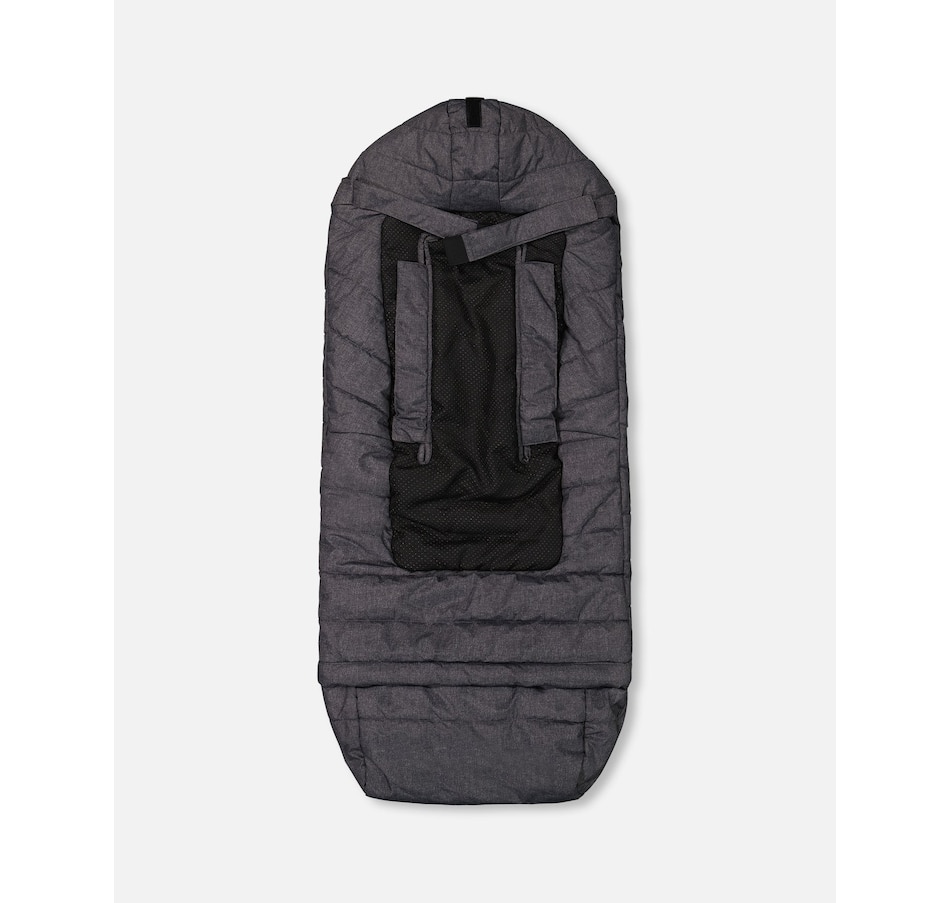 Venture outside on extra-cold days with baby safe and warm in our Evolutive Baby Footmuff Textured Gray. Fully insulated to keep little ones cozy in temperatures as low as -30° C (or -22° F), this outer layer features a soft plush lining, a durable front zipper, an adjustable hood, and an adjustable length to fit growing babies. It includes openings and flaps to thread car seat and stroller harnesses and safety belt buckles.