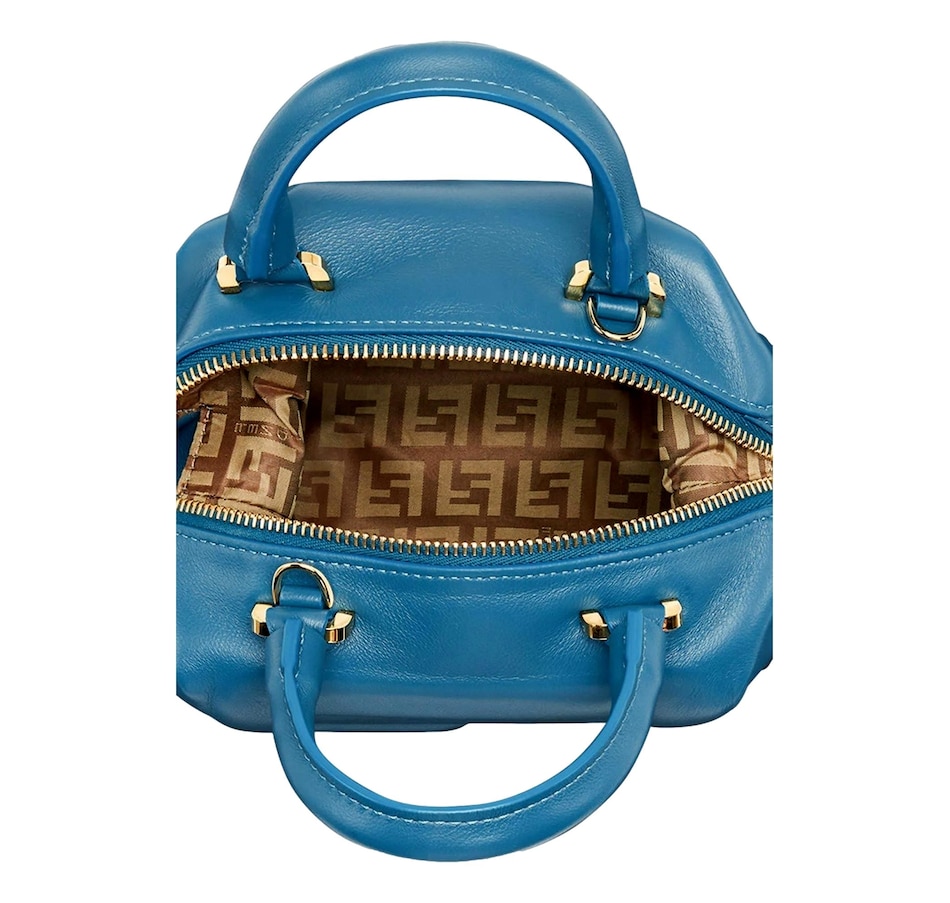 The Fendi FF Cube Women's Handbag in Mare Dark Blue is a striking and contemporary crossbody bag that combines luxury with playful design. Crafted from high-quality materials, this bag features a unique cube shape and a rich dark blue hue that adds sophistication to any outfit. The iconic Fendi logo is prominently displayed, showcasing the brand's distinctive heritage and style. The adjustable crossbody strap ensures comfortable wear, making it ideal for day-to-day use or special occasions. With a cleverly designed interior that provides ample space for your essentials, this handbag perfectly balances functionality with fashion. Whether paired with casual attire or dressed up for a night out, the Fendi FF Cube is a chic accessory that effortlessly elevates your look. Model 8BS089 Blue leather FF Fendi embossed logo Leather top handle Leather detachable strap Gold hardware Zipper closure Dimensions: (LWH) 8x4.5x6 in Handle drop: 3in Strap drop: 20in  Made in Italy Includes dustbag and authenticity cards