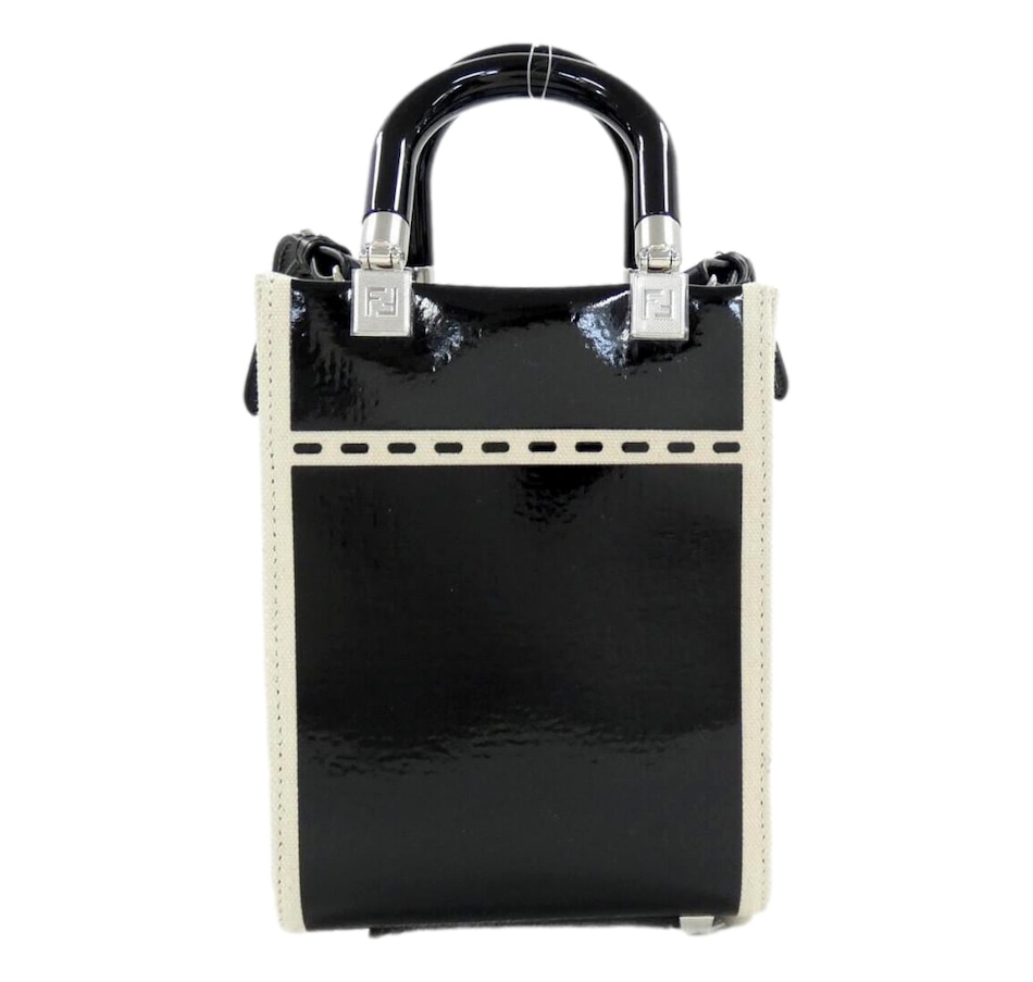 The FENDI FF Mini Bag Shopper Tote Crossbody is a stylish blend of luxury and versatility. Crafted from a combination of premium leather and durable canvas, this bag features the iconic Fendi FF logo prominently displayed, adding a touch of sophistication to any outfit. The sleek black exterior ensures it pairs effortlessly with both casual and formal ensembles.
