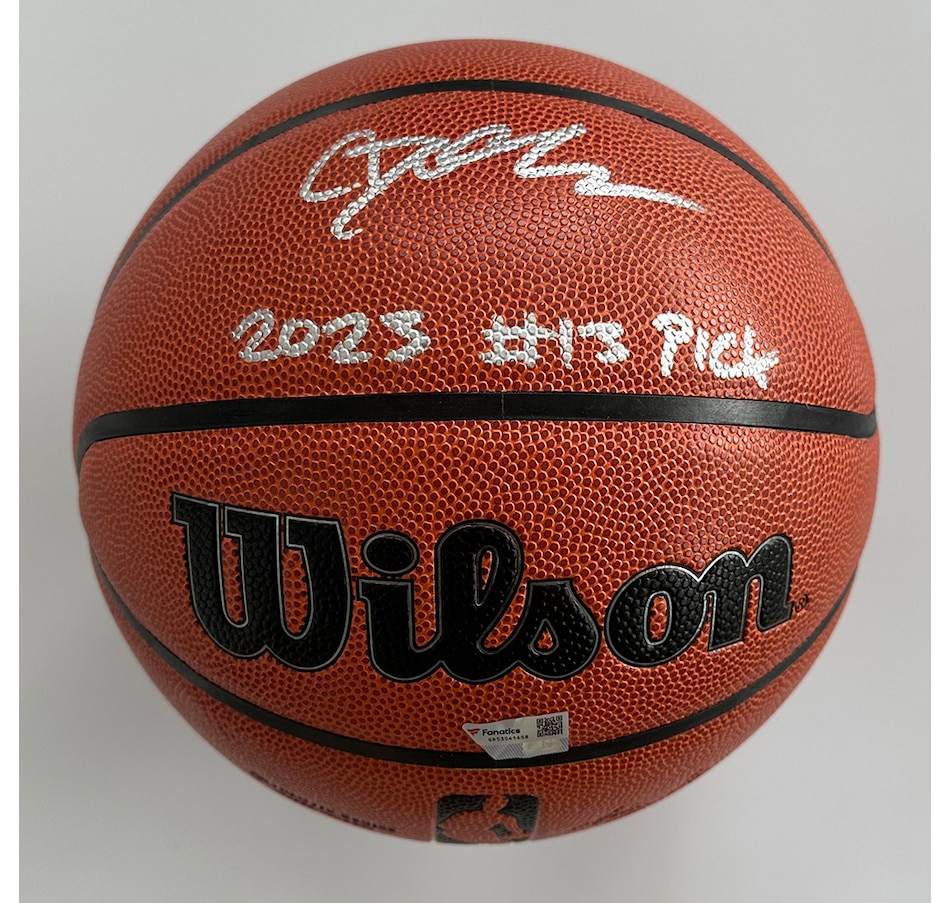 This is a great opportunity to obtain a piece of memorabilia from the Toronto Raptors exciting first round draft pick Gradey Dick. A fabulous piece to add to your collection, this ball is beautifully signed and inscribed across the face, and comes with a matching Fanatics COA and hologram guaranteeing the authenticity of the signature.
