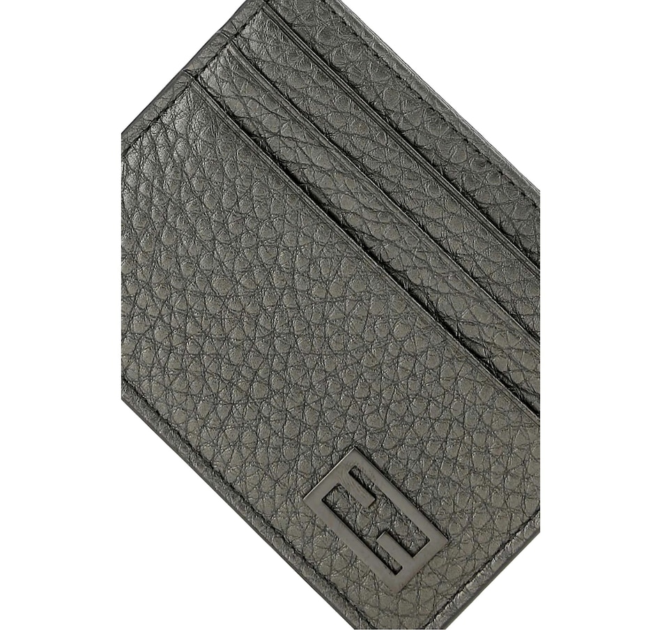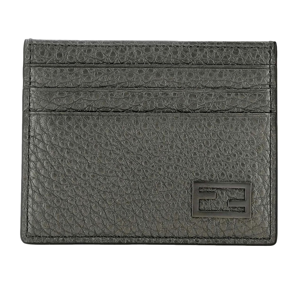 This card case pairs graphite grey grained calfskin leather and the Fendi Baguette logo to create the perfect card case. There are three card slots on each side of the card case separated by one bill slot in the center. This card case is so stylish and perfect for carrying your personal information and credit cards. This card case's sleek style is perfect for both men and women.