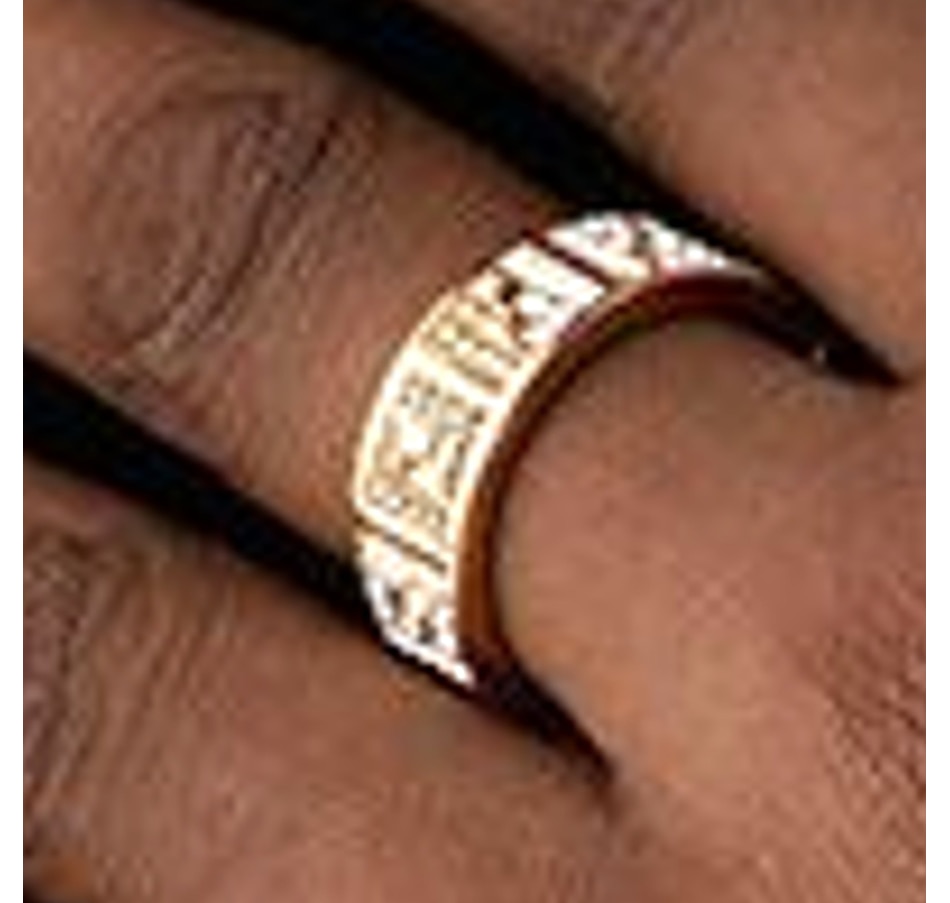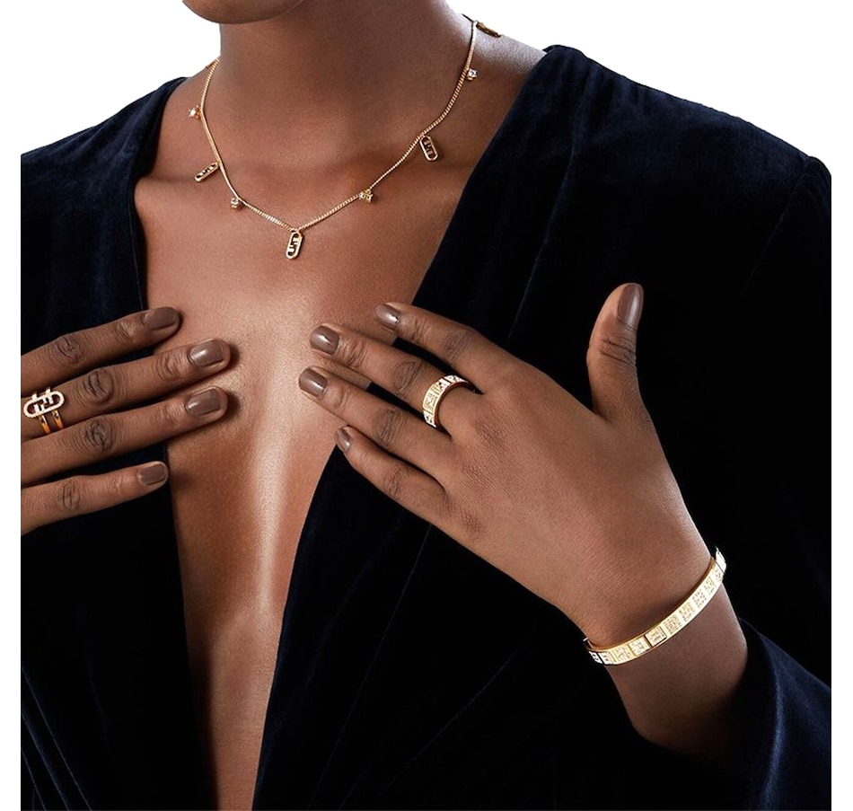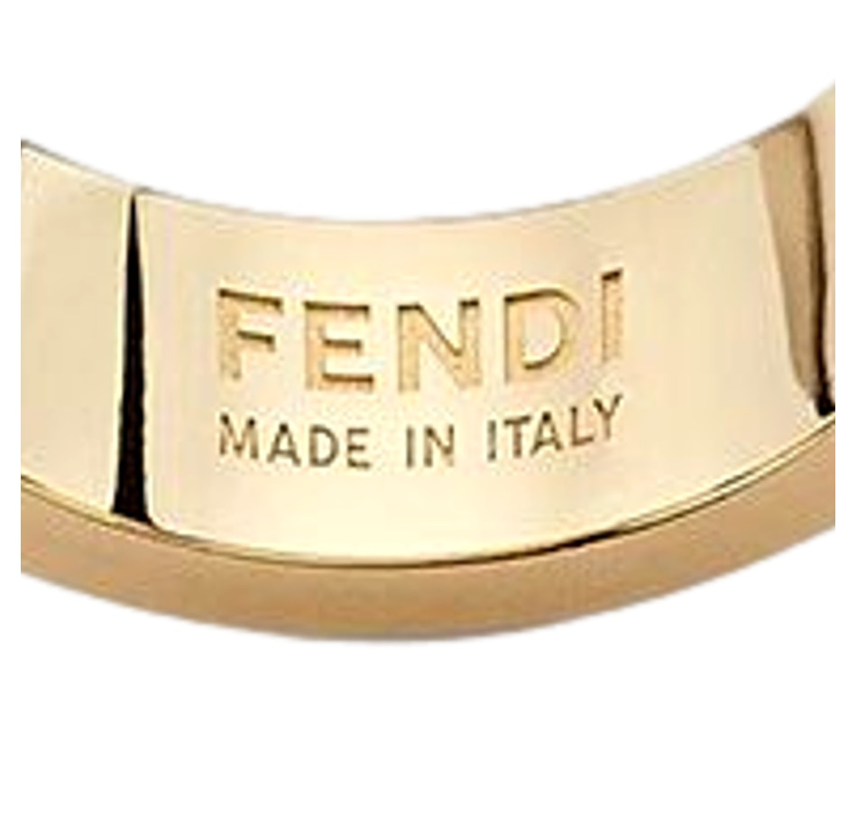 Elevate your style with the iconic F is Fendi Wide Band Crystal Ring, featuring engraved letters on gold-finish metal. This classic ring includes engraved decoration in the F is Fendi shape and decorated with natural crystals. Fashion-forward and elegant, this ring makes the perfect finish for any outfit. Gift this gorgeous ring or add it to your personal designer collection, only from Fendi.
