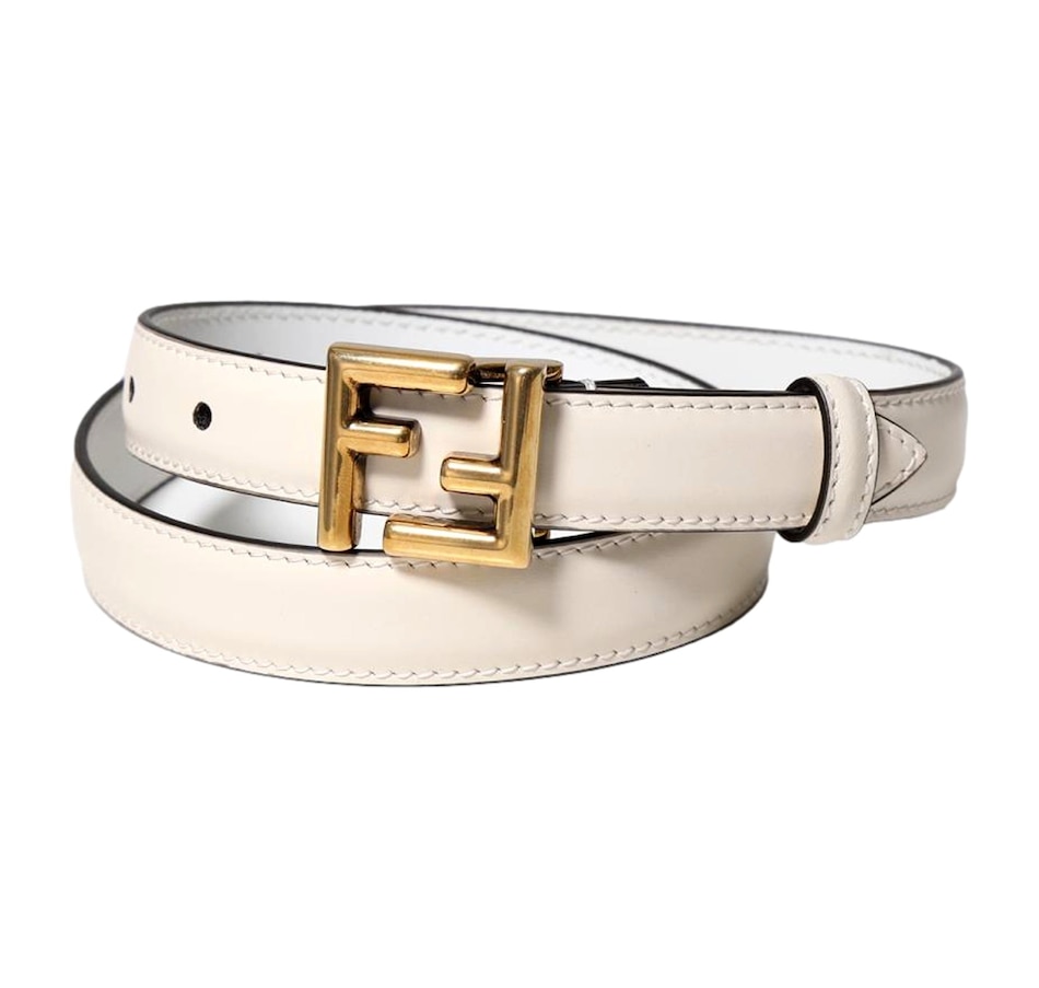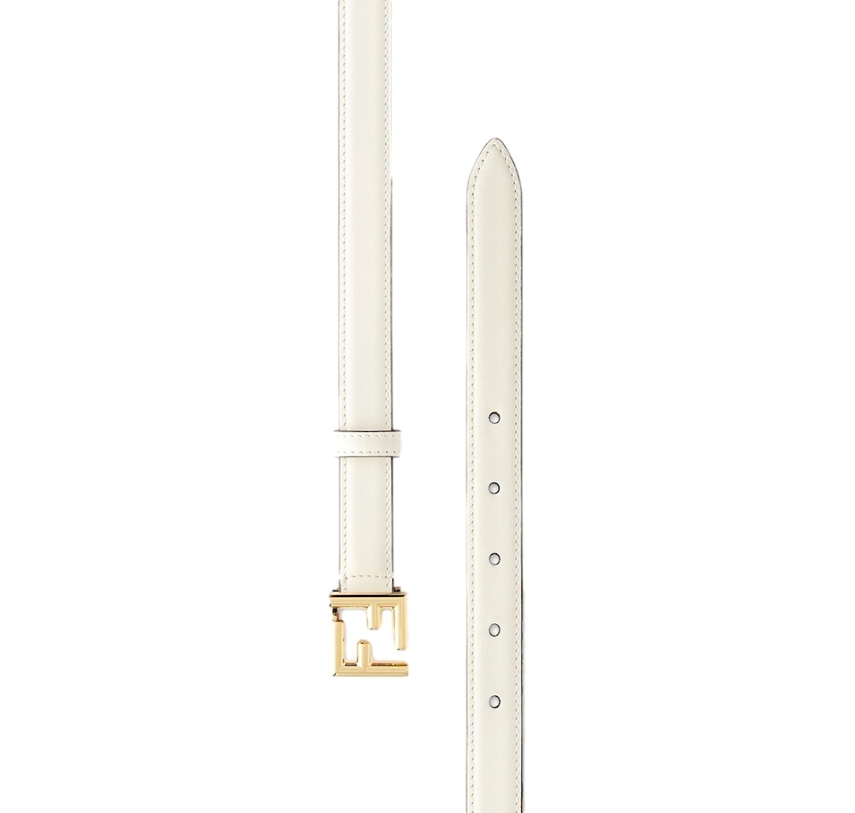 A refined accent of understated luxury, the Fendi FF Logo Skinny Belt is crafted from smooth white leather for a clean, elegant finish. Accented with a polished gold-tone FF buckle, it brings a subtle yet iconic statement to any look. Sleek and versatile, this timeless accessory reflects Fendi’s signature Italian craftsmanship and effortless sophistication.