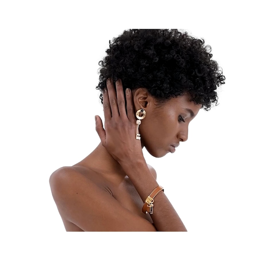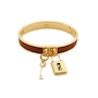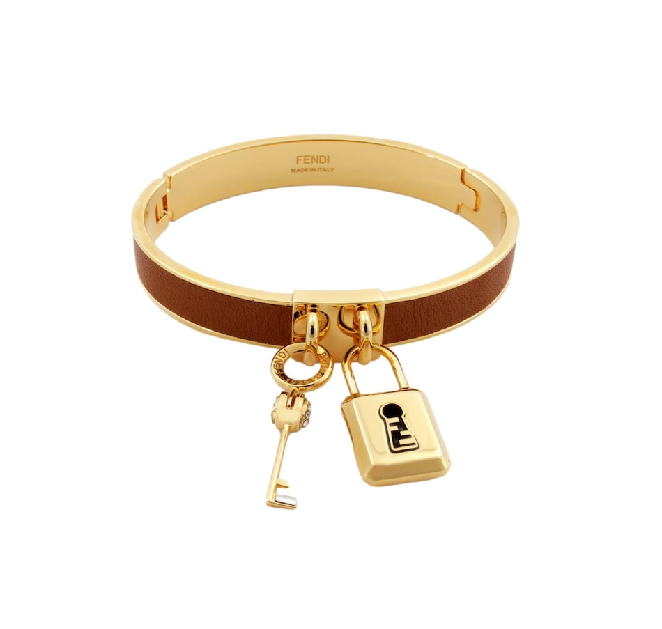 The Fendi Master Key Brandy Leather Gold Medium Bracelet is a striking fusion of modern design and luxurious craftsmanship, embodying the brand's iconic aesthetic with a contemporary twist. The medium size of the bracelet ensures a balanced presence on the wrist, making it suitable for a range of occasions.