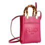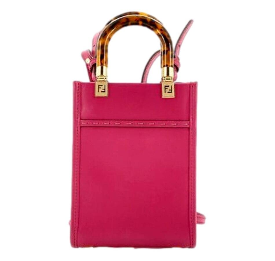 The Fendi Sunshine Shopper Fuchsia Pink Small Handbag Crossbody Bag is an eye-catching and stylish accessory that effortlessly elevates any look. Made from premium leather, it boasts a bold and vibrant fuchsia pink hue, making it the perfect statement piece for those who love to stand out. The bag features a sleek, structured design with soft, rounded edges for a feminine and sophisticated appeal.