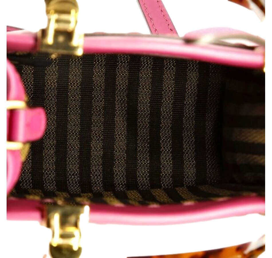Designed for versatility, it includes two carrying options: a top handle for a chic handheld look and a detachable crossbody strap for added comfort and hands-free convenience. The bag is beautifully accented with the signature Fendi logo and gold-tone metal hardware, lending a touch of luxury. With its blend of high-fashion design and everyday functionality, the Fendi Sunshine Shopper is perfect for both casual and more formal occasions.