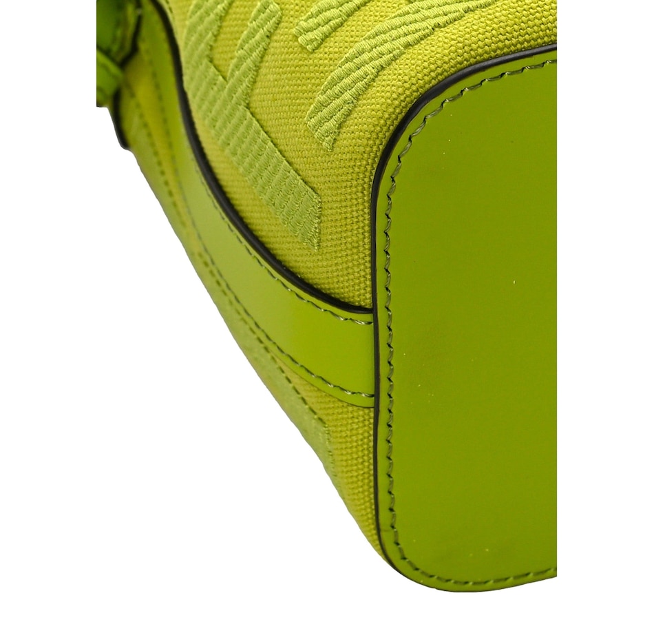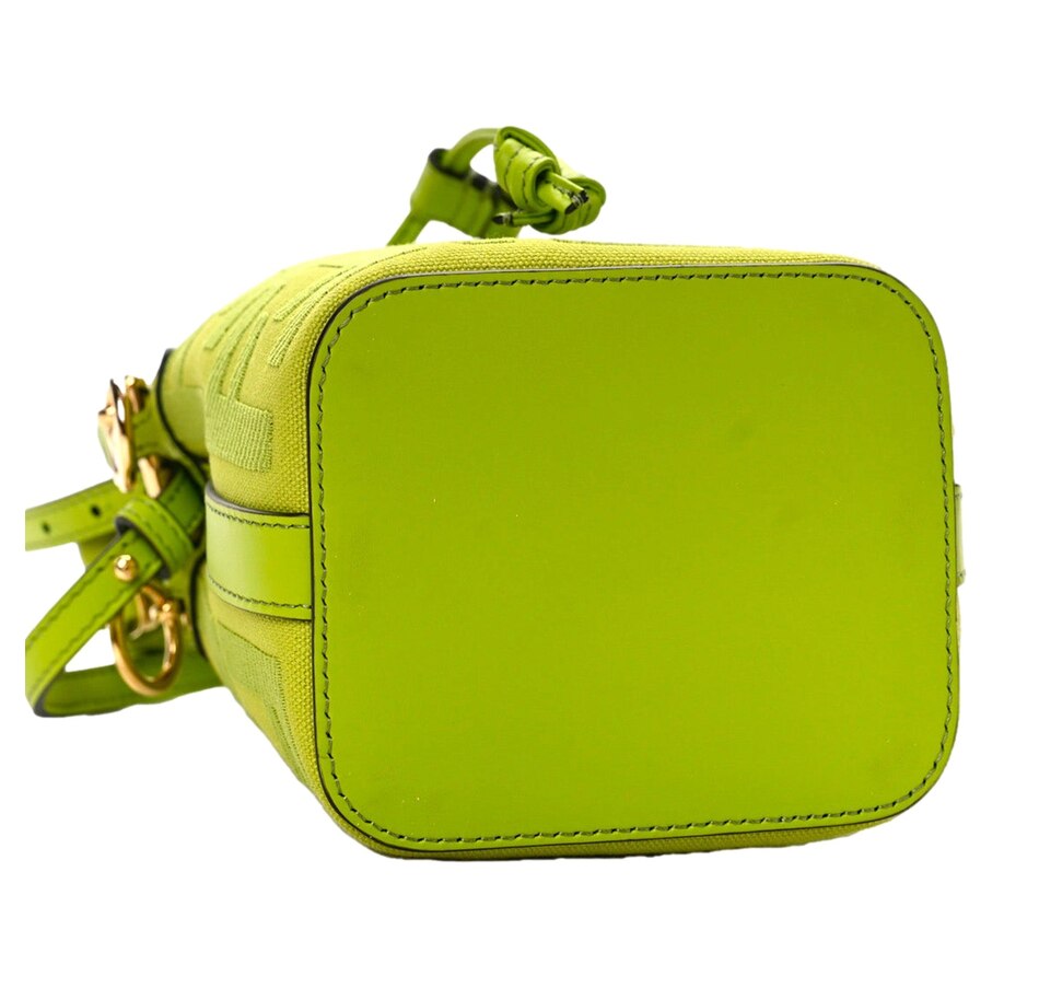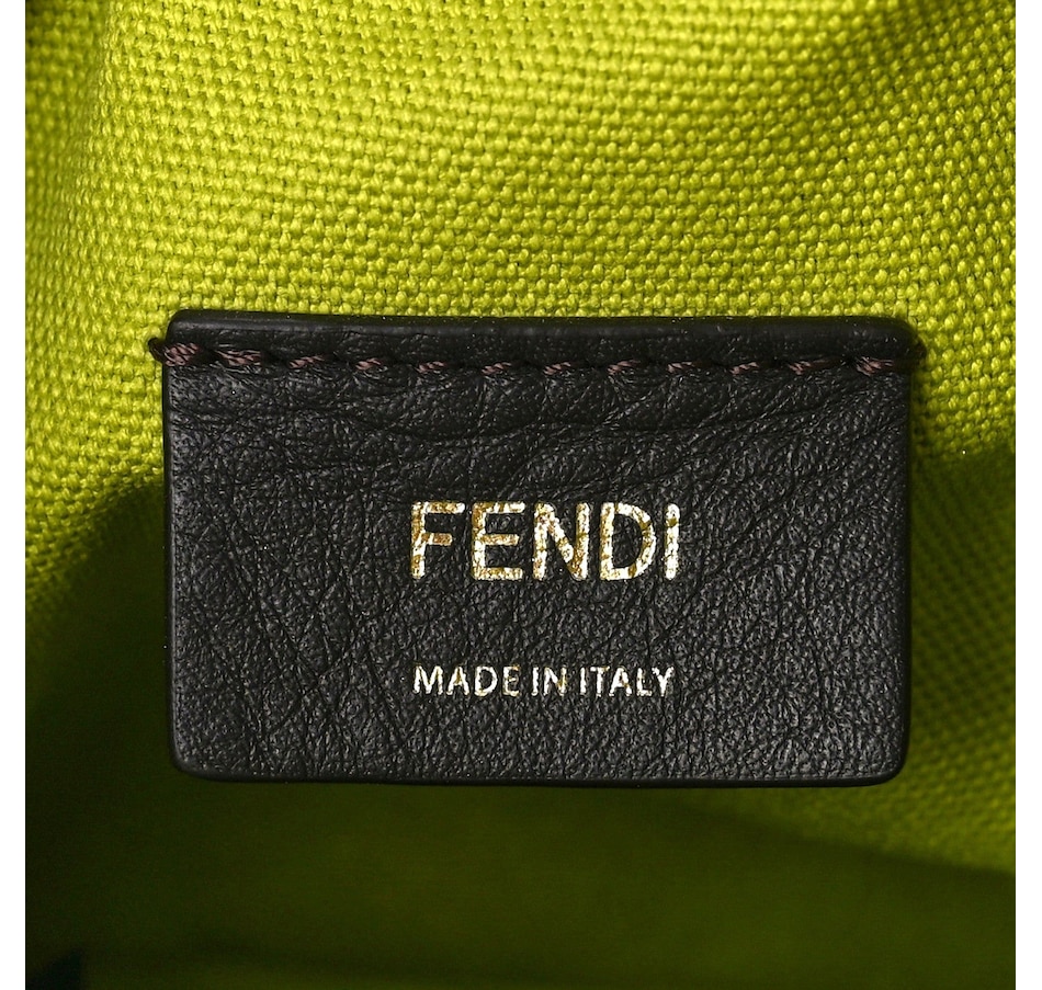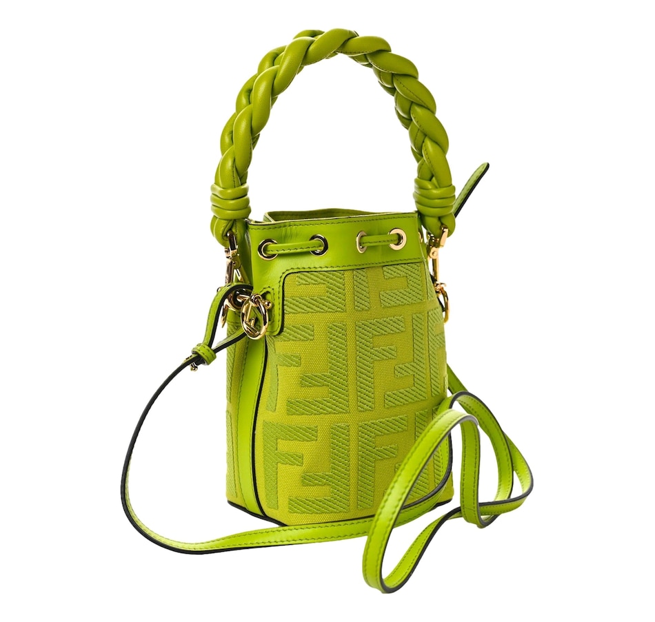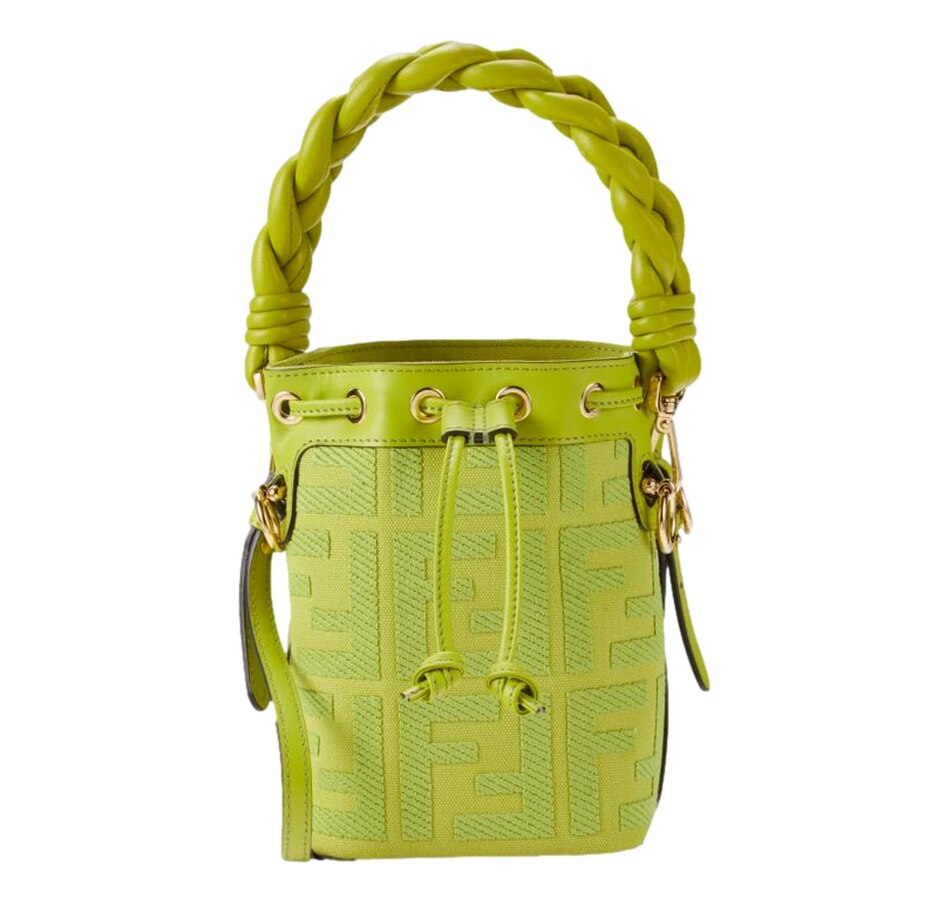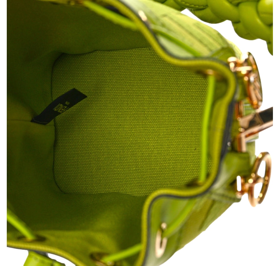 Crafted from premium leather, its vibrant green hue adds a bold statement to any ensemble. The drawstring closure ensures security while maintaining easy access to essentials. The adjustable shoulder strap allows for versatile styling, whether worn crossbody or on the shoulder. Ideal for both casual outings and evening affairs, this bag embodies Fendi's timeless elegance and contemporary flair, making it a must-have addition to your wardrobe.