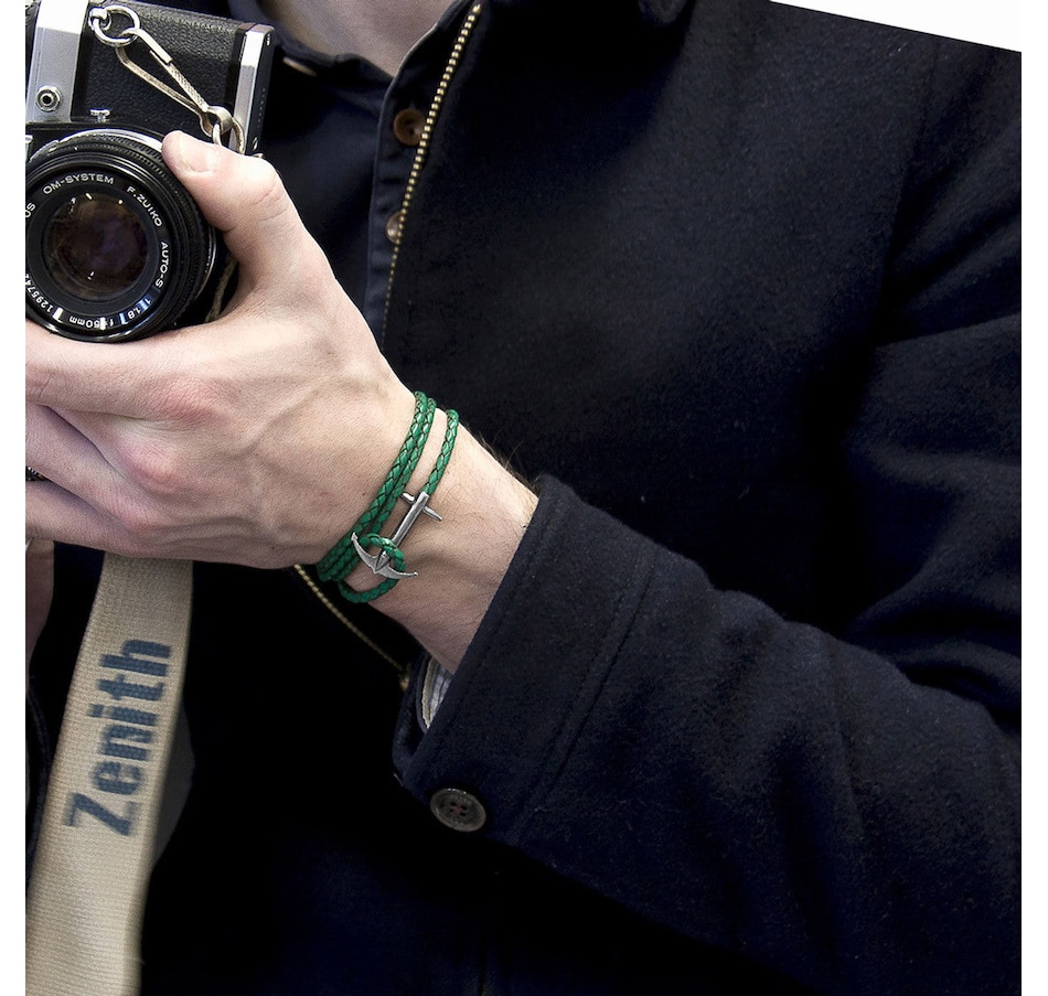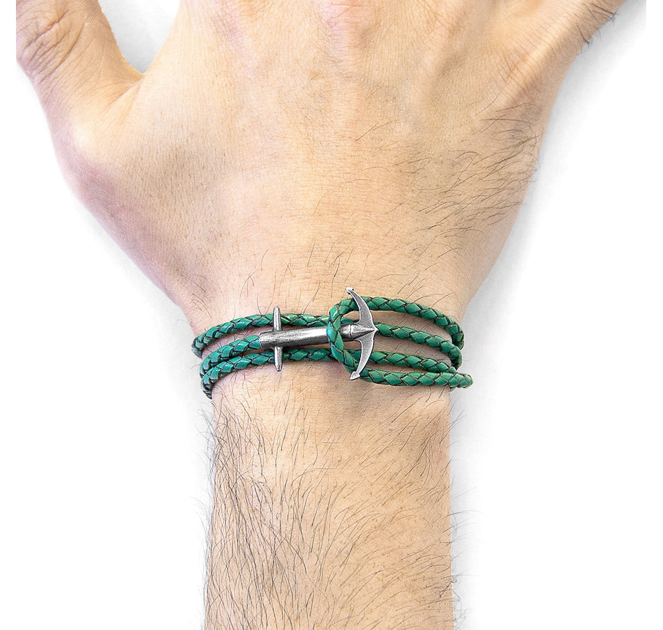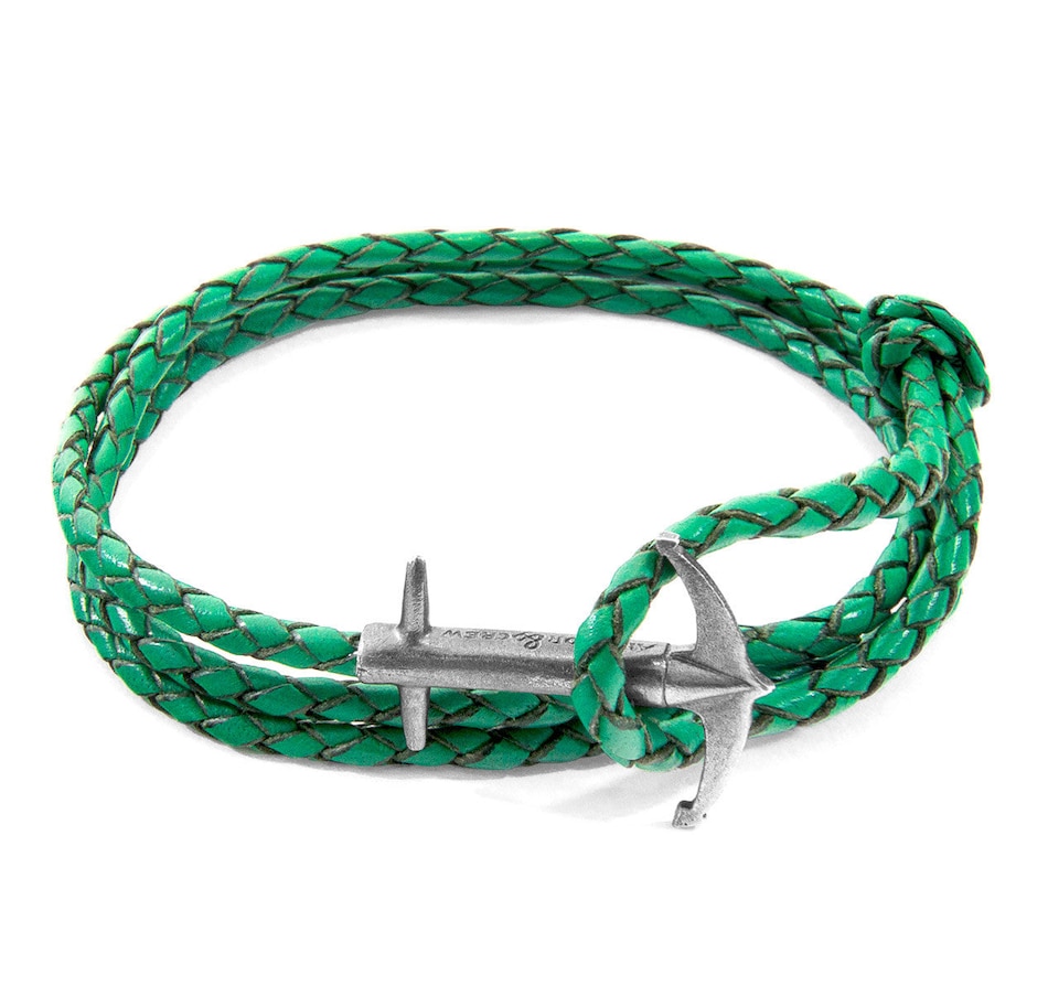 The Fern Green Admiral Anchor Silver and Braided Leather Bracelet was both designed and skilfully handcrafted completely in Great Britain. Combining British craft manufacturing with a discerning modern-minimalist style, this ANCHOR & CREW bracelet features:Genuine and natural round-shaped braided leather (GB)Secure solid .925 sterling silver anchor (GB) SIZINGThis bracelet is one size fits all, with the leather able to extend or tighten to suit your wrist size. To take the bracelet on or off your wrist, simply slide the one adjustable knot around the leather to make the loop size smaller or larger, and once set, keep the loop size consistent and continue wearing by easily unhooking the clasp from the loop. Less is More.