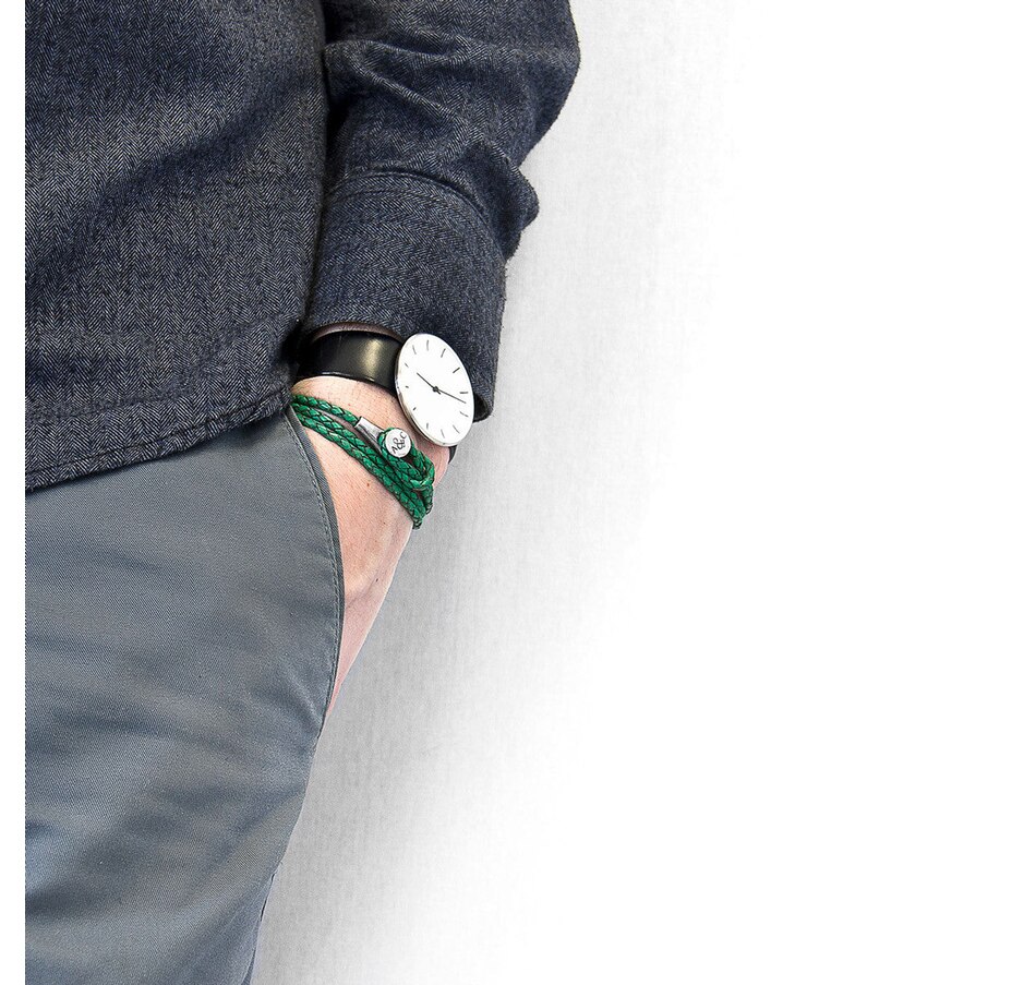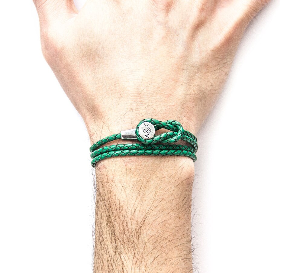 The Fern Green Dundee Silver and Braided Leather Bracelet was both designed and skilfully handcrafted completely in Great Britain. Combining British craft manufacturing with a discerning modern-minimalist style, this ANCHOR & CREW bracelet features: Genuine and natural round-shaped braided leather (GB)Secure solid .925 sterling silver mushroom-button cleat (GB)SIZINGThis bracelet is one size fits all, with the leather able to extend or tighten to suit your wrist size. To take the bracelet on or off your wrist, simply slide the one adjustable knot around the leather to make the loop size smaller or larger, and once set, keep the loop size consistent and continue wearing by easily unhooking the loop over the clasp. As pictured, the bracelet is most secure when the leather loop is fed through the smaller loop that emerges beyond the clasp. Less is More.