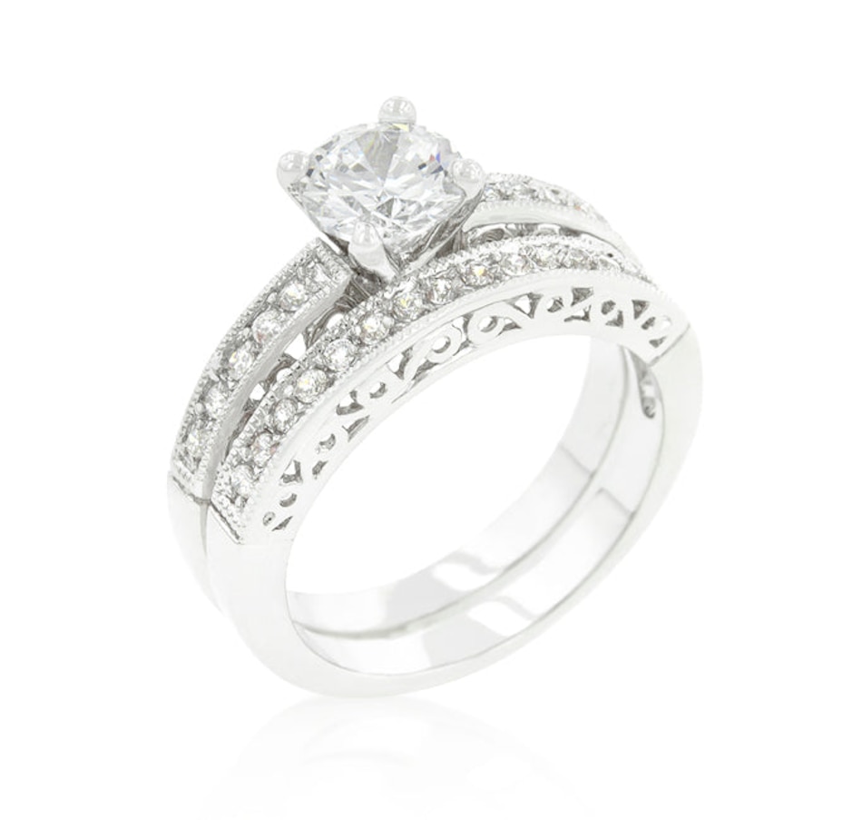 Feminine and elegant. Simple and sophisticated. Fashioned in an elegant cubic zirconia this elegant set would be ado by any woman. Our genuine finish is achieved using an electroplating process that coats the item with heavy layers of a close cousin to platinum which gives our jewelry a platinum luster.