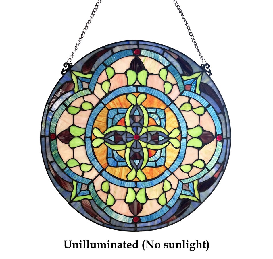 • Glass panel is skillfully handcrafted with 261 pieces of 100% genuine stained glass and five pieces of cabochon (polished gems).