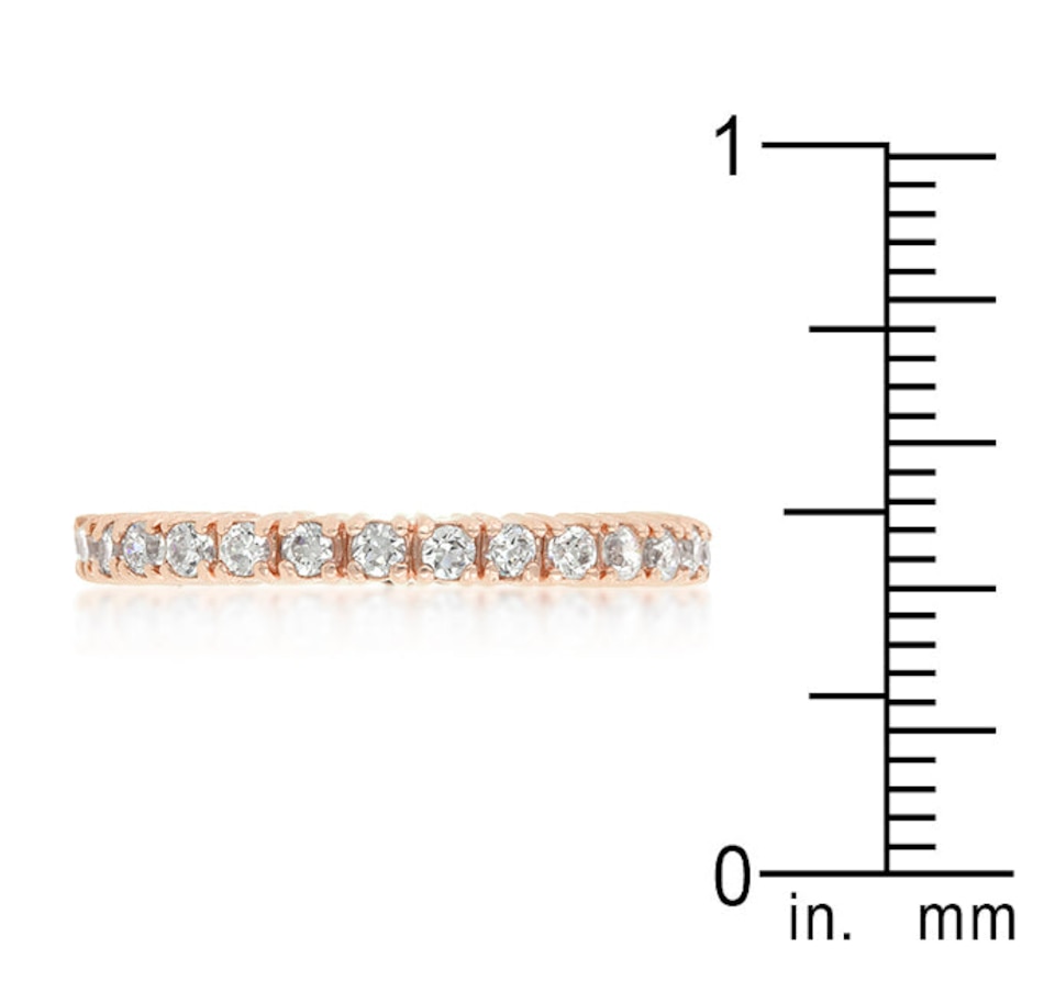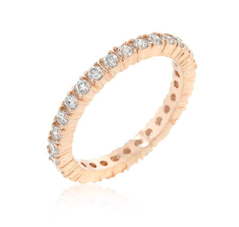 Elegant gold is plated on this classic eternity style. 18k plated gold is achieved using an electroplating process that coats the item with heavy layers of 18k gold and color-treated to display a perfect color.