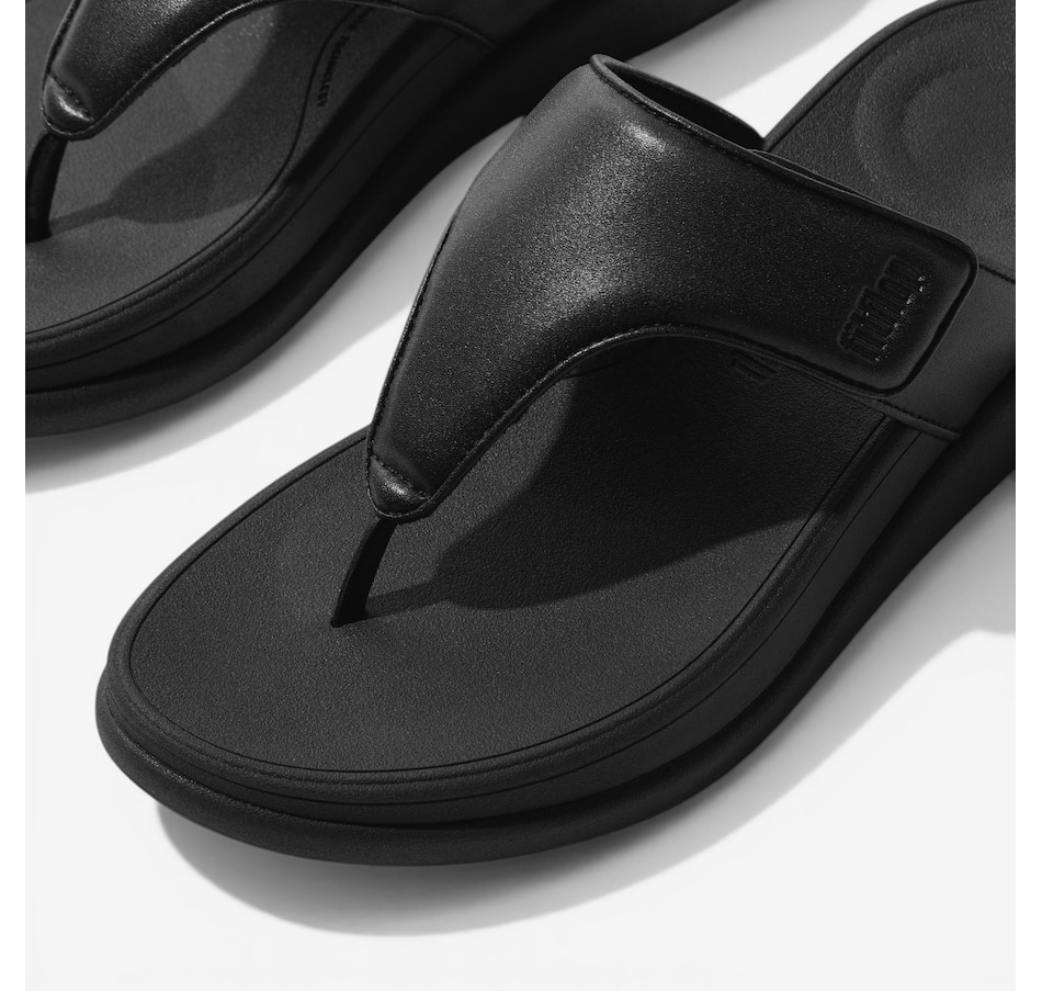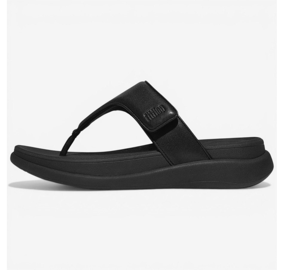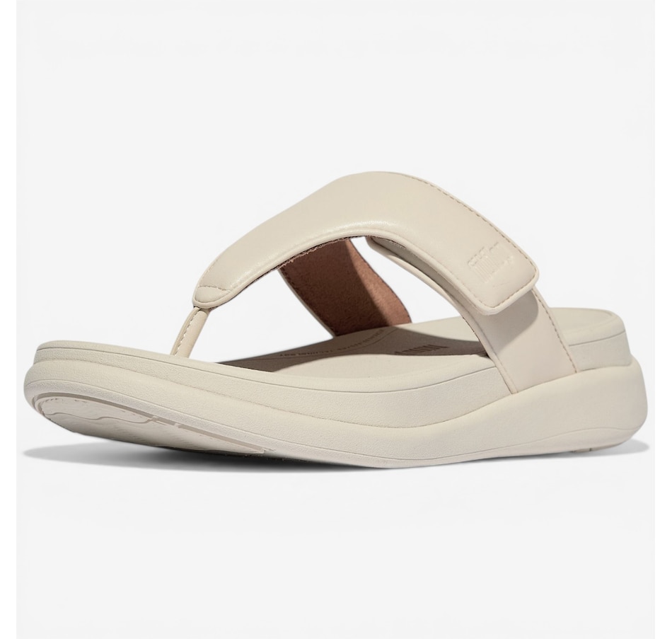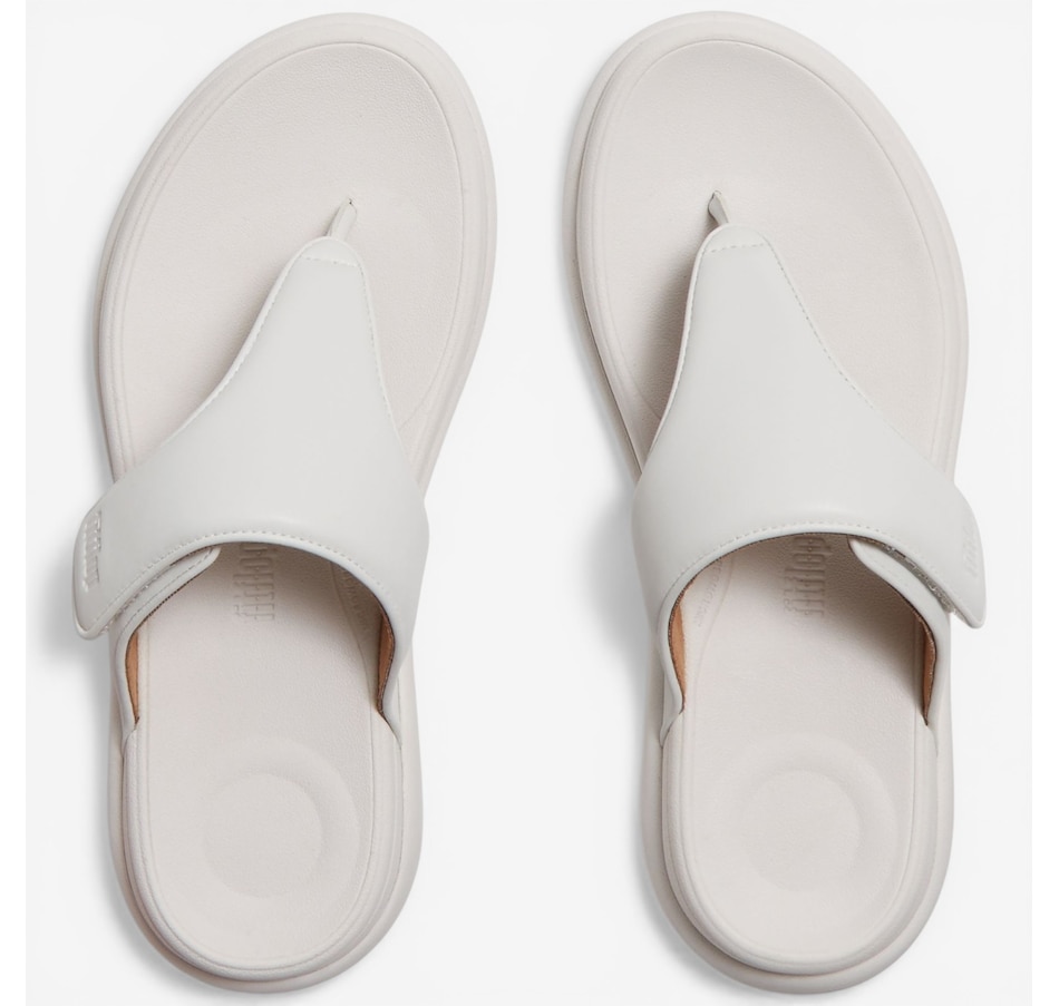 With the F‑Mode Go, FitFlop has created a simple, streamlined sandal infused with signature comfort. Designed with a chunky sole, this style features a modern stripped‑back look and fluid lines. This toe‑post sandal is crafted in padded, pillow‑soft faux leather, with an easy touch‑fastening strap that adjusts for a comfortable fit. The naked footbed gives the original feel of FitFlop’s first sandals, allowing your feet to enjoy direct contact with the cushioned triple‑density Microwobbleboard® midsole, reworked in a new ultra‑light and flexible two‑layer version. This easy, everyday style is essential for everyone.