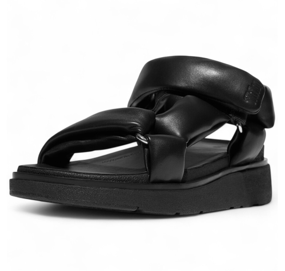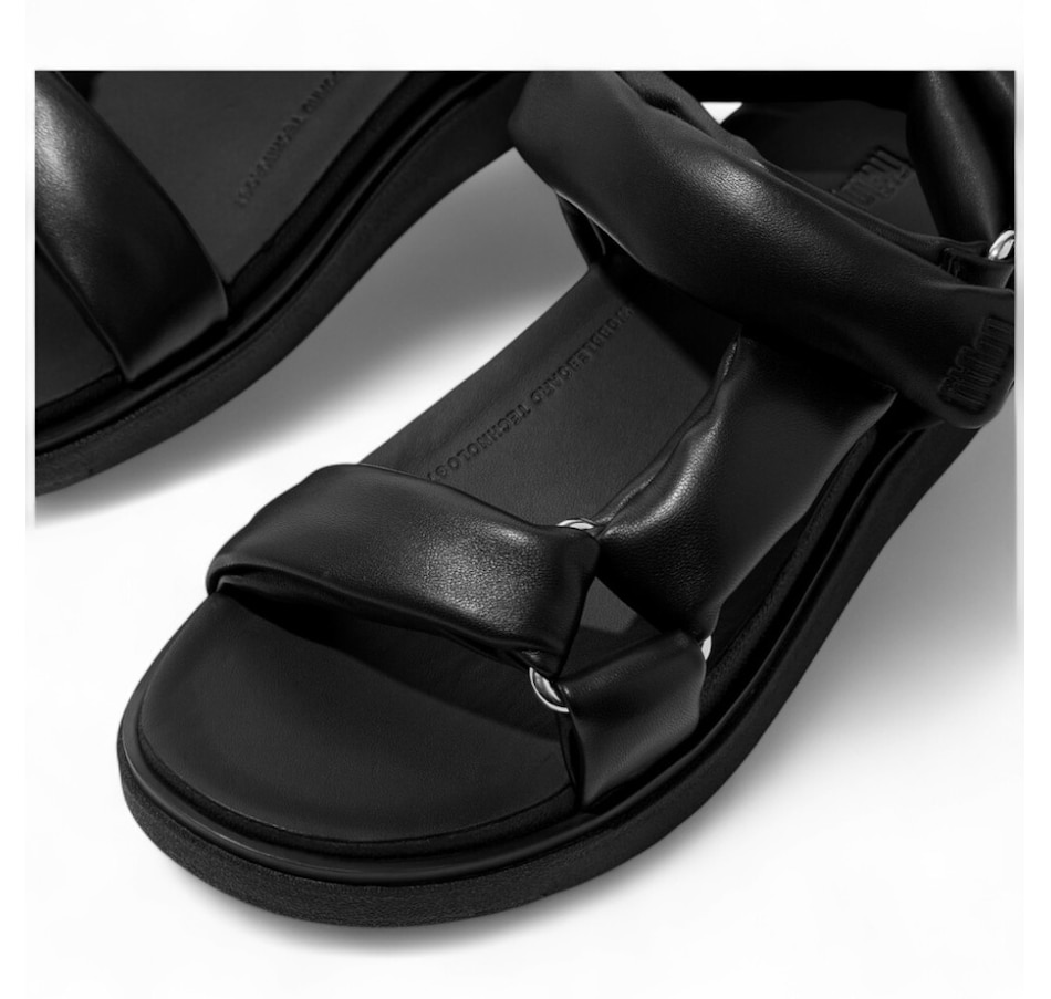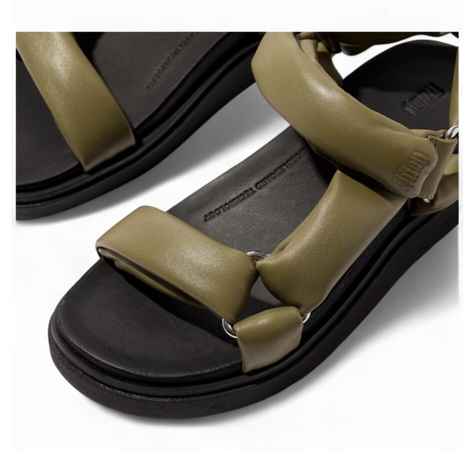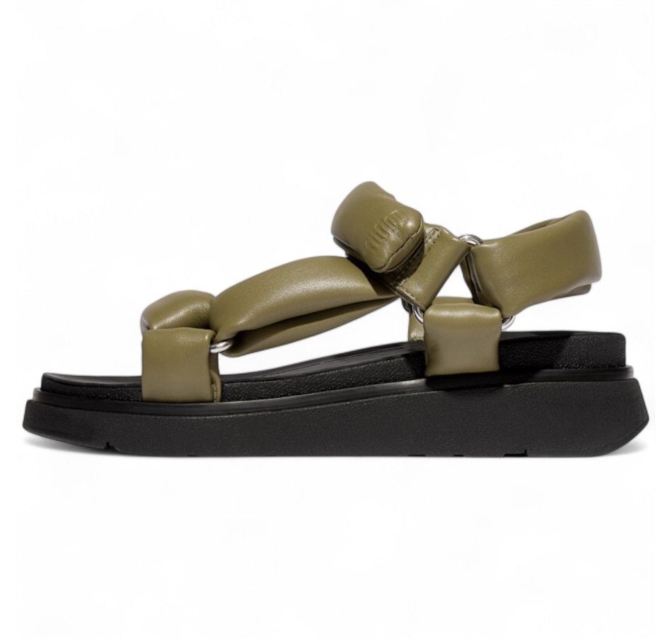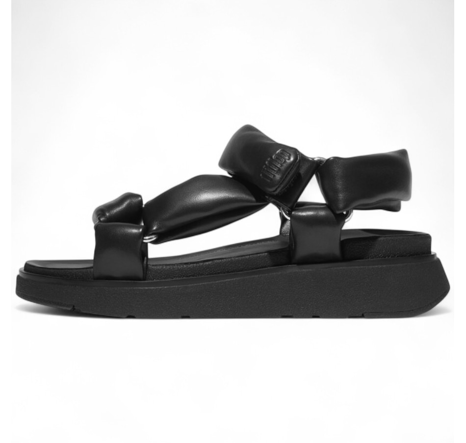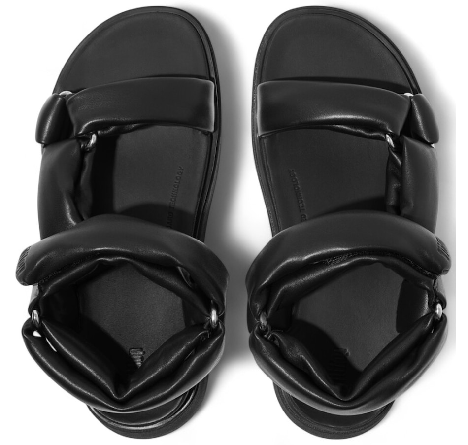 FitFlop's next-generation sandal is a supremely soft, modern-luxe interpretation of a 'hiker' style. Boasting a directional chunky sole and padded straps, it is crafted in premium Nappa leather, with a subtle shine that's butter-soft against your feet. Shiny triangular D-rings add to the aesthetics, a touch fastening on the ankle strap adjusts the fit, and leather footbeds give extra comfort. It sits on a light clean-look version of FitFlop's ultra-cushioned Microwobbleboard midsole. This gorgeous sandal offers an exceptional feel like little else!