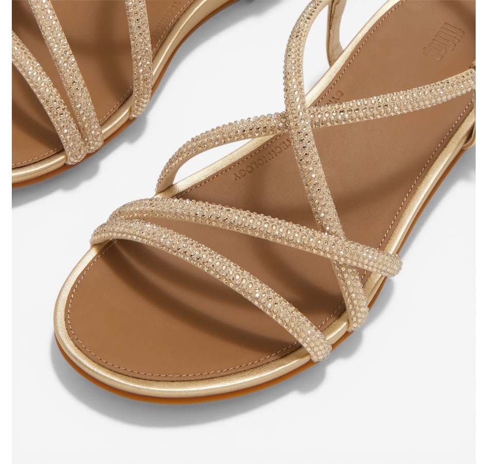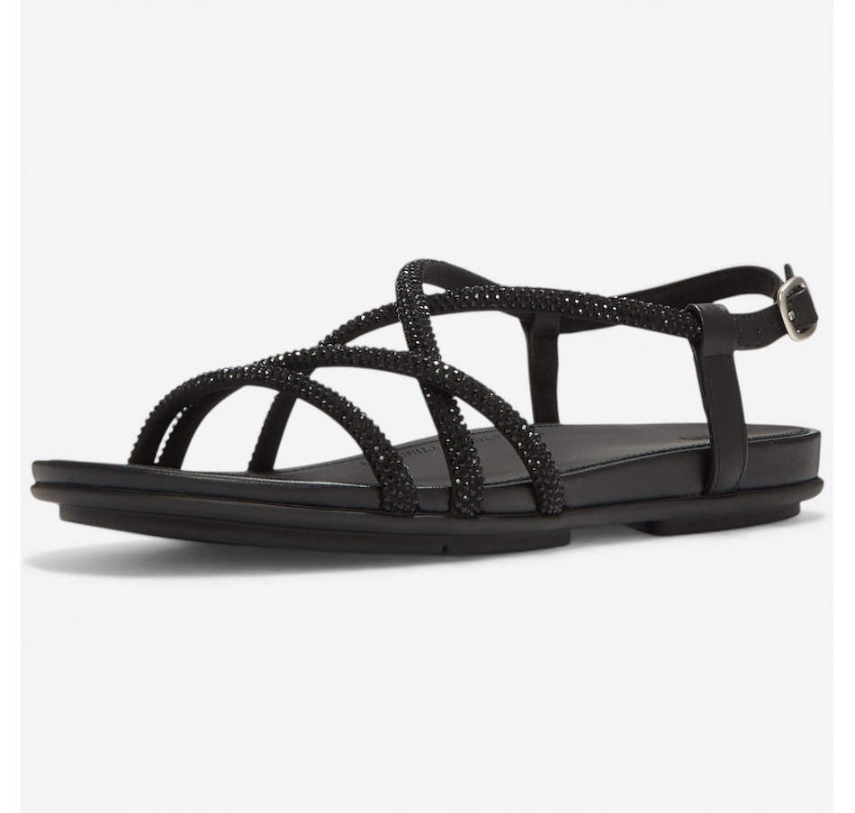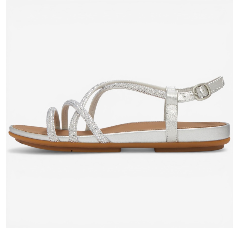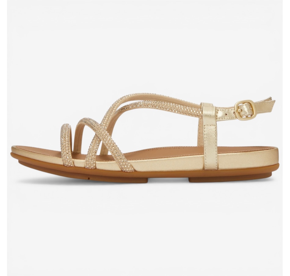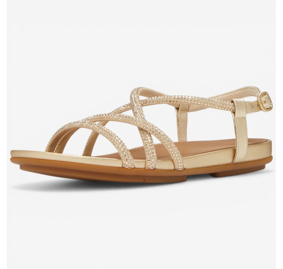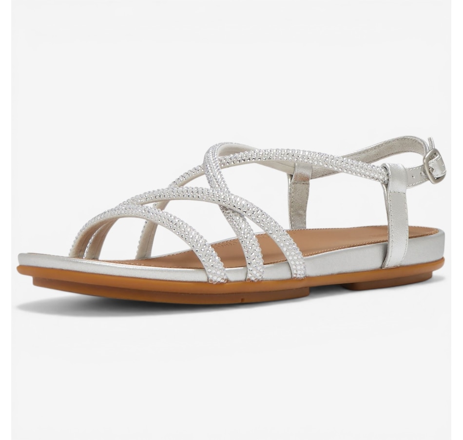 The Gracie crystal strappy sandal from FitFlop is designed as a failsafe for the warmer months, with strappy styling that transitions easily from sunny days to balmy nights. For the Gracie flats, the focus remains on a versatile, skimpy silhouette you already love, built with comfort firmly in mind. Unlike other flat shoes, these sandals are biomechanically engineered with hidden pockets of high‑rebound cushioning that absorb impact from the ground as you walk and respond to your body’s natural movement for all‑day comfort and stability.