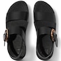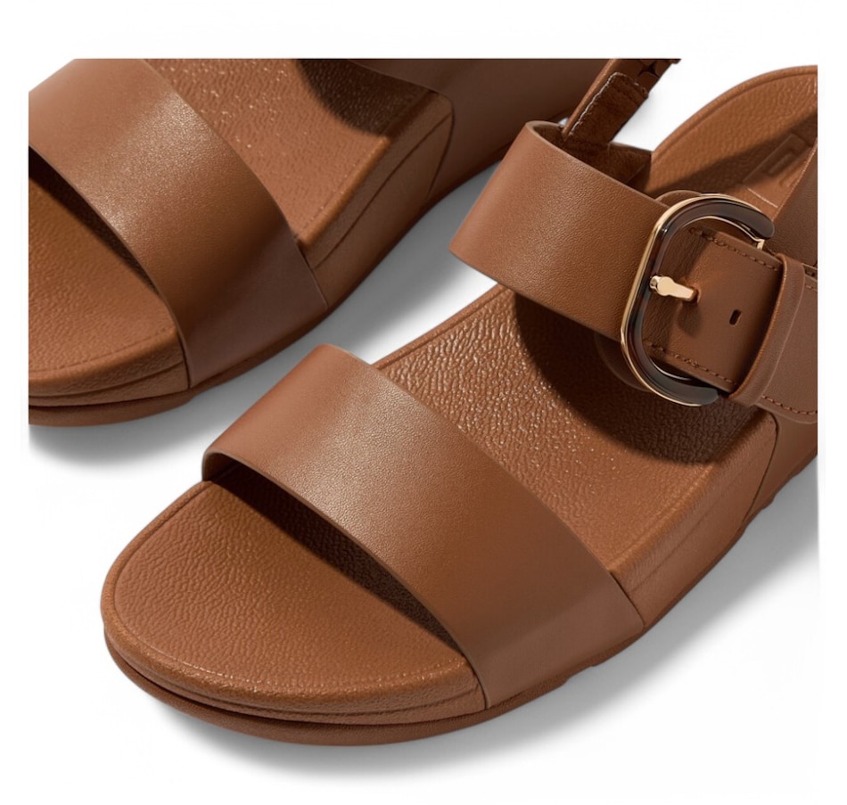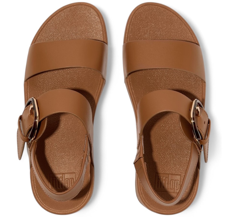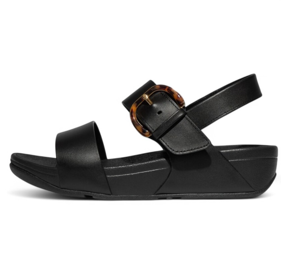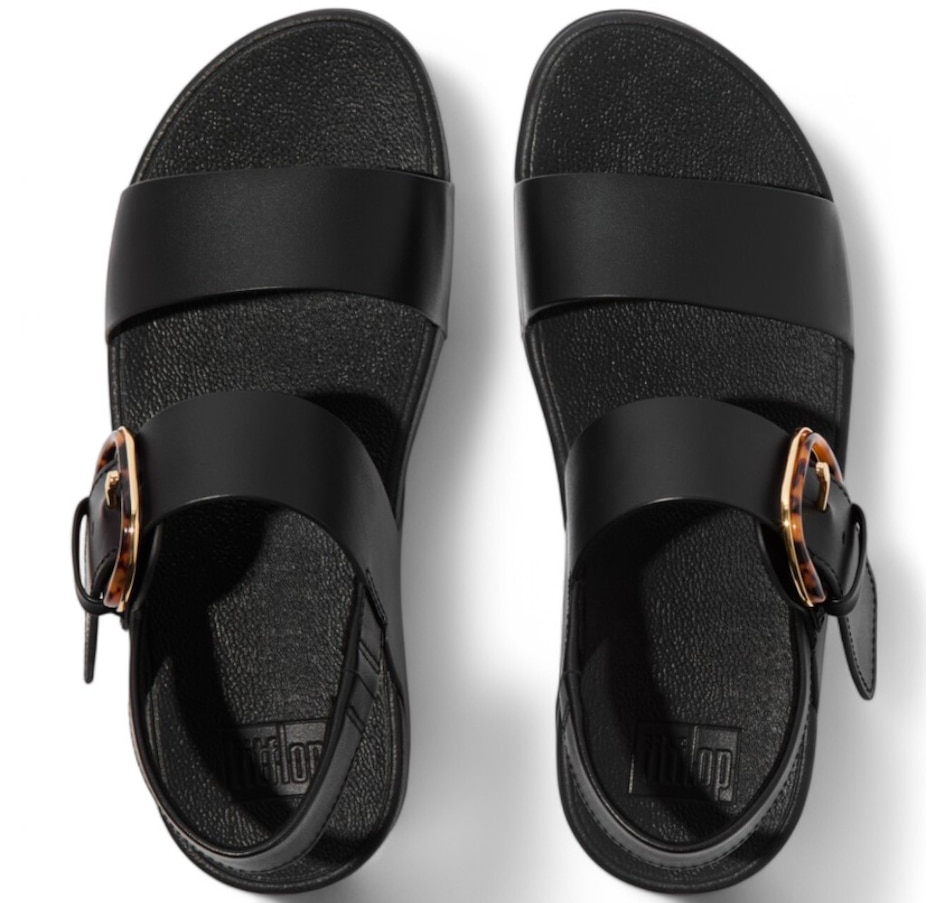 This two-bar sandal boasts classic lines, softly padded uppers, and a back so they stay on nicely. It sits on an ultra-comfortable Microwobbleboard midsole that elevates your comfort with every stride. This season it is crafted in smooth leather with an adjustable statement buckle, featuring a glossy classic tortoiseshell resin inlay, in a shiny 'antique-gold' casing. This chic sandal has refined detail that will elevate almost any daytime look.