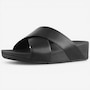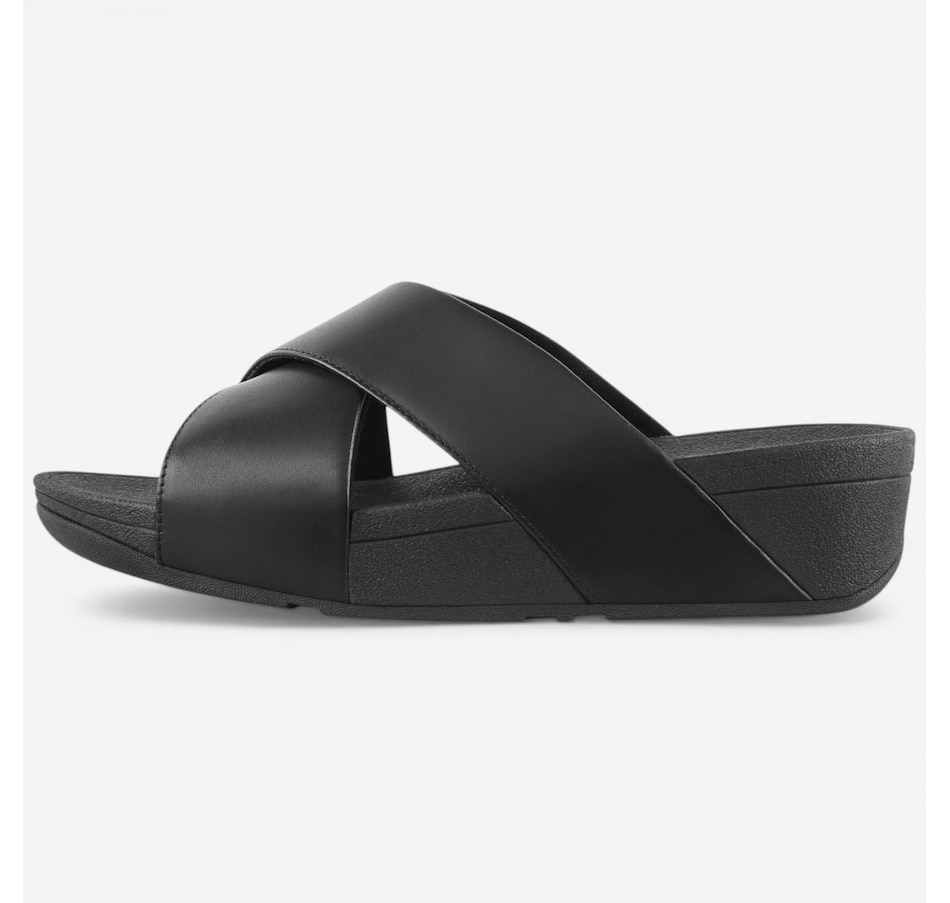 Effortlessly secure and irresistibly comfortable, the Lulu cross band sandal from FitFlop brings a fresh, cocooning update to an iconic favourite. Designed with two criss‑crossing front straps, this silhouette offers a hugging, higher‑coverage fit that feels stable and supportive while still looking sleek and modern. Crafted from buttery‑smooth leather and fully lined with soft microfibre, the straps sit gently against the skin for all‑day comfort with no irritation.Â