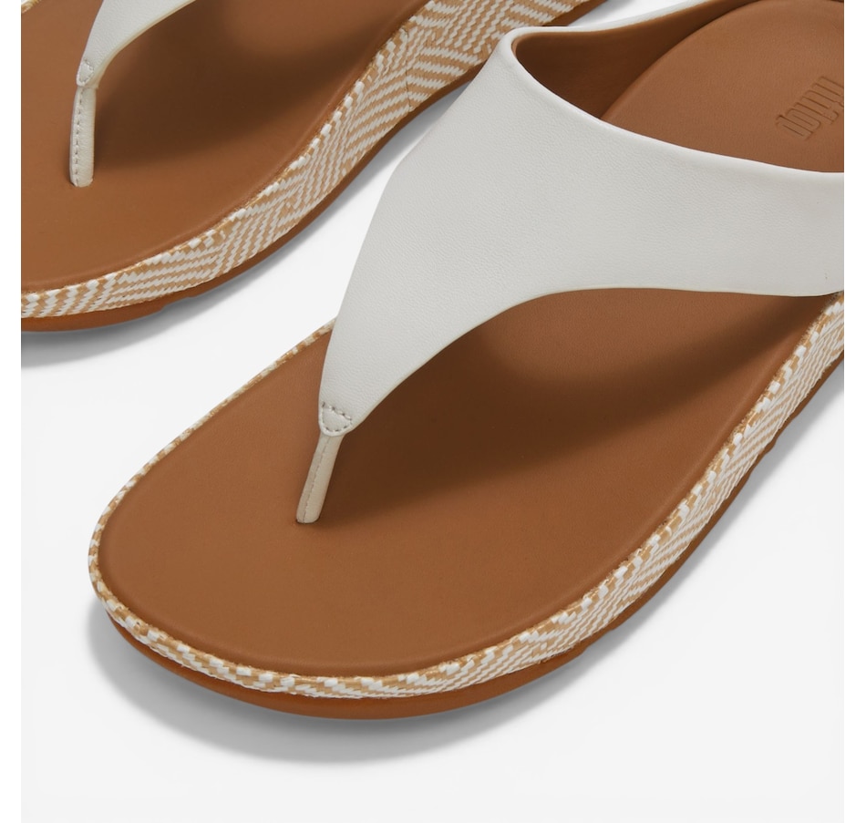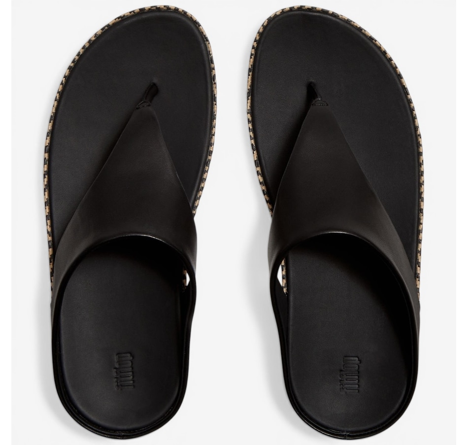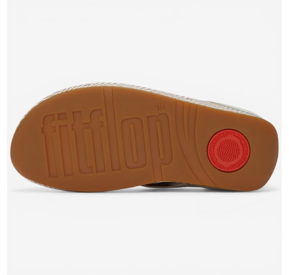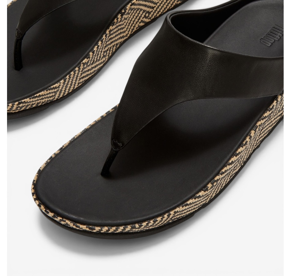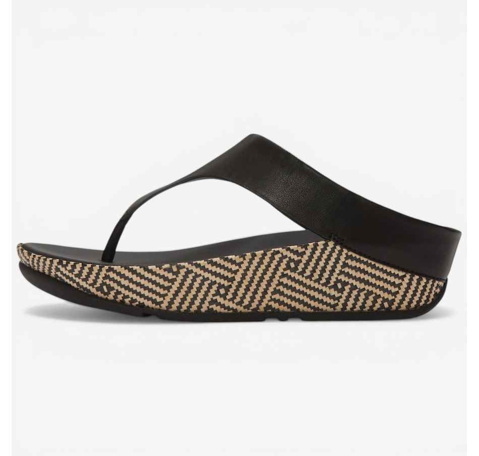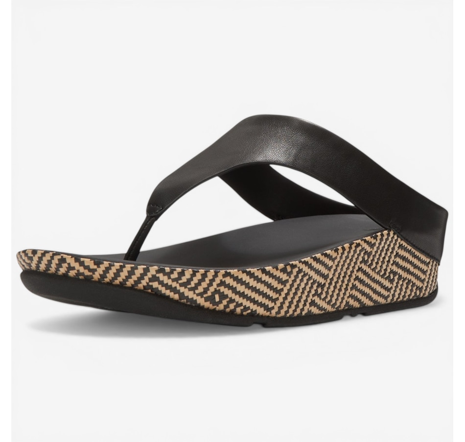 The Lulu silhouette you know and love is recreated with a bold graphic wedge sole for a fresh seasonal update. The signature triangular vamp of FitFlop’s much‑loved Lulu sandals is crafted from soft, supple leather, securing a sole wrapped in a raffia‑style, monochromatic graphic pattern and powered by the brand’s legendary Microwobbleboard® technology. Ergonomically engineered to optimize body alignment, natural movement, and energy, the light pressure-diffusing Microwobbleboard® midsole delivers triple‑density cushioning for all‑day comfort.