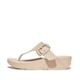 FitFlop's bestselling Lulu sandals boast simple lines, a timeless triangular vamp, and unbeatable underfoot feel. They feature FitFlop's legendary triple-density micro-wobbleboard midsoles, ergonomically optimized to deliver pressure diffusion, impact reduction, and all-day super-cushioning. They are crafted in supple leather, including the toe post. This version has unpadded straps and ultra-clean 'raw edges' (the leather upper and microfibre lining are bonded together, with virtually no stitches/folding) to create a lighter, minimal, modern look. Perfect for setting off the detail of the adjustable buckle, there's a curvy half-moon shape, covered in soft Nappa leather. The Lulu is subtly chic and versatile.
