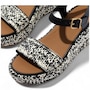 Modern and refined, FitFlop's PlatFForm is an exceptional achievement in comfortable high heels. It is soft, light, and superbly cushioned. This high-wedge sandal features woven faux-raffia for texture, trend, and artisanal/boho vibes. A buckled ankle strap in luxe leather means they stay on beautifully, and the leather footbed enhances the comfort. Its CushX midsole is biomechanist-designed to give an all-day sneaker feel in a heeled style.