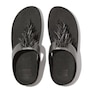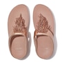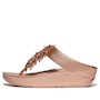 Do the Rumba with these glittering, graceful toe-post sandals! They feature slim uppers strewn with a shiny, swishy fringe formed of multi-tonal 'crystal' beads (clear, opaque and metallic), and made upon FitFlop's legendary triple-density micro-wobbleboard midsoles for all-day comfort and cushioning. Slip them on and find a party! This version with uppers and midsole are wrapped in soft metallic pearlized faux-leather to maximize their shimmer.