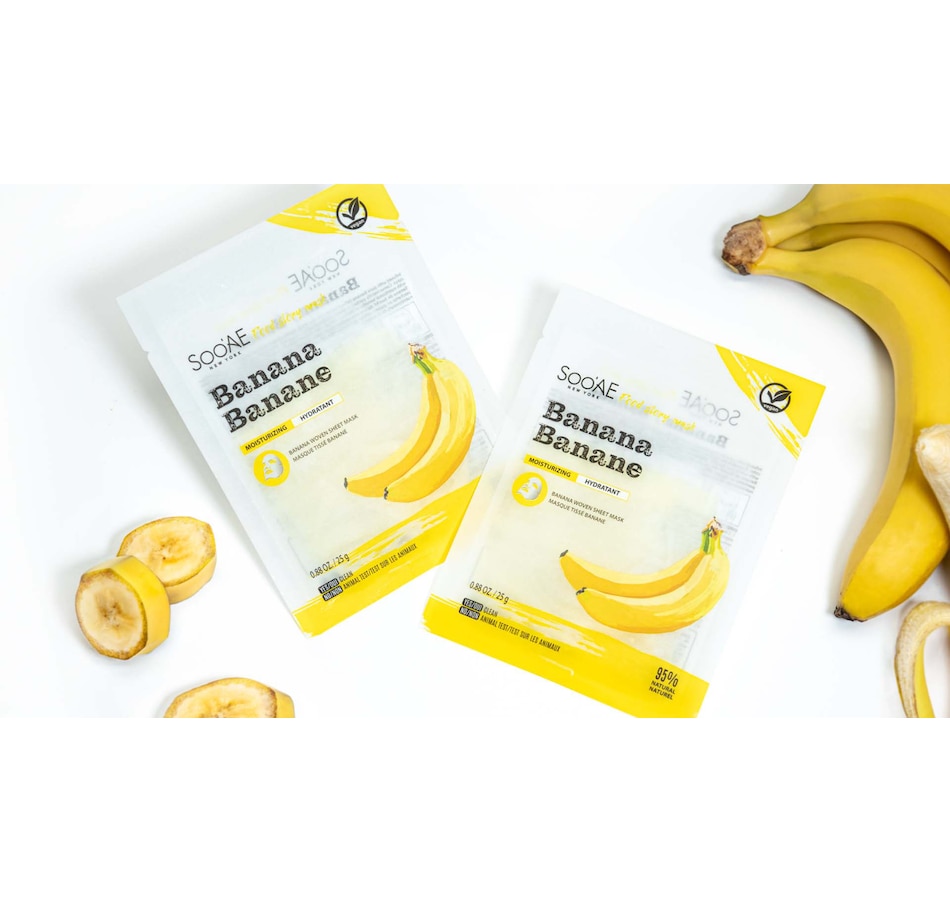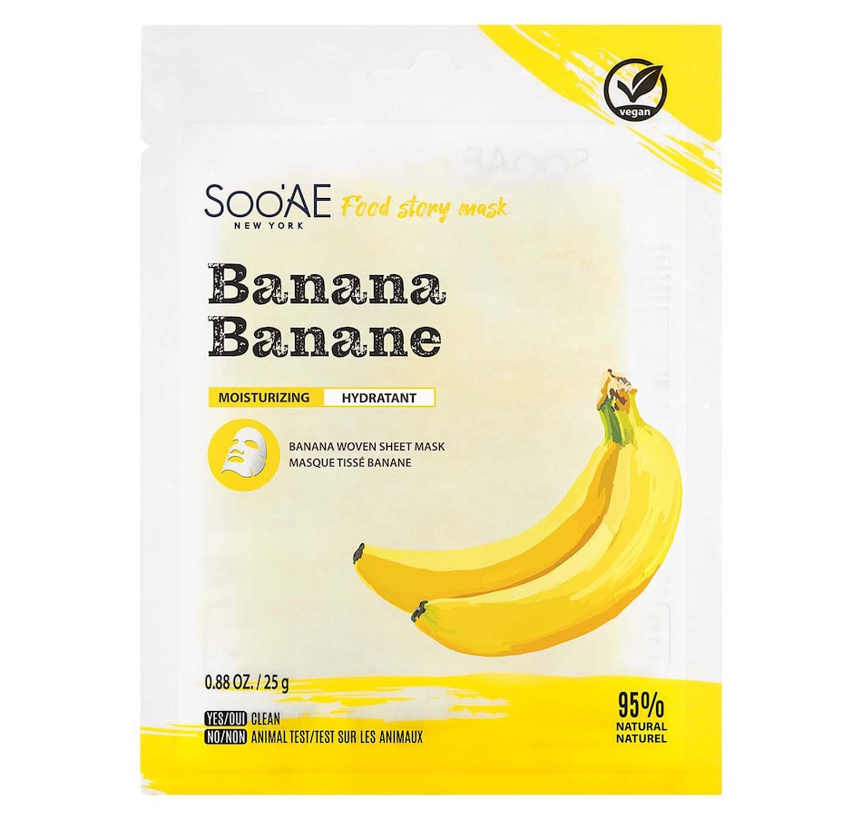 Infused with pure banana extract woven into the sheet, this soothing banana mask delivers a unique, natural ivory yellow colour.. Conveniently packed in a paper combined pouch, using this mask is an easy solution to pamper skin with the natural nutritional benefits of banana.