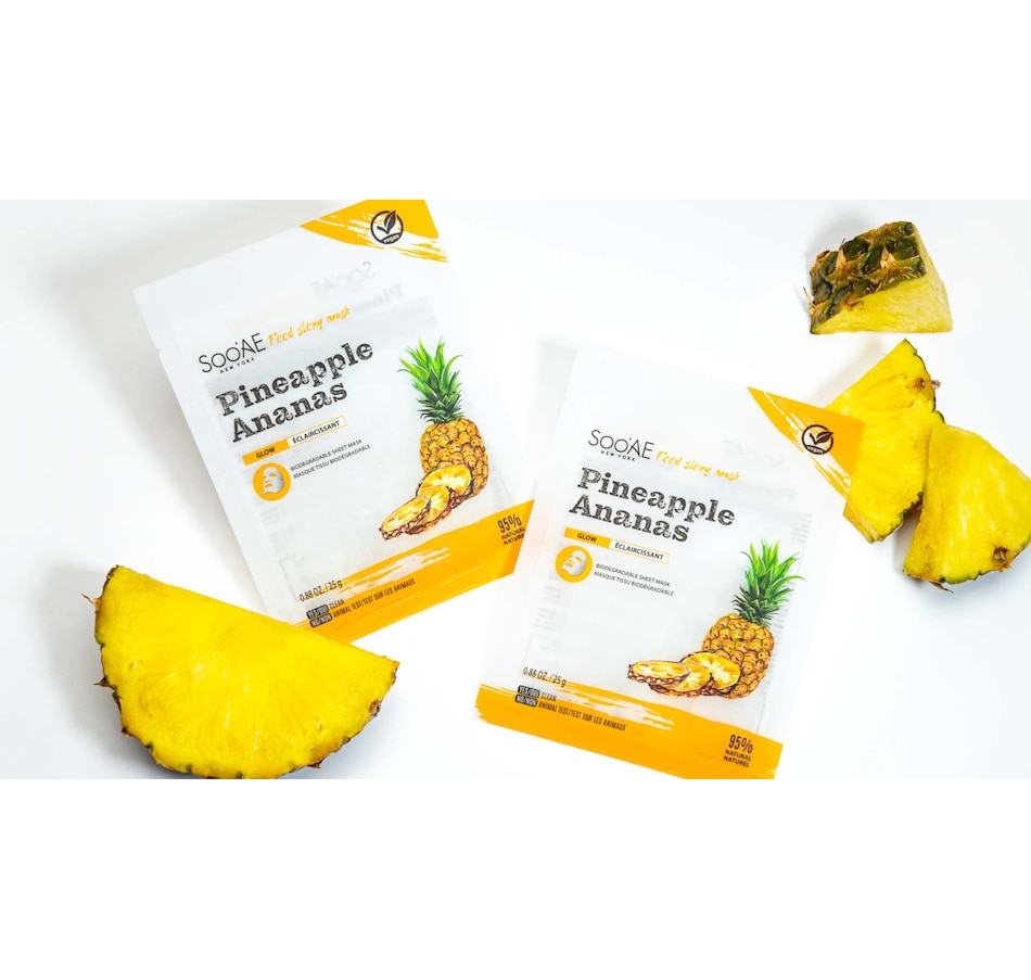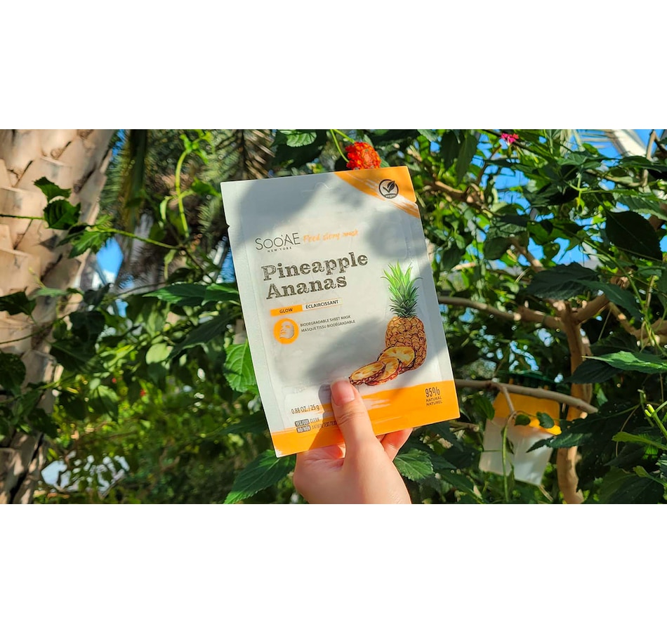 This eco-friendly soothing pineapple mask is biodegradable for a greener disposable solution. Conveniently packed in a paper combined pouch, using this mask is an easy solution to pamper skin with the natural nutrients of pineapple extract.