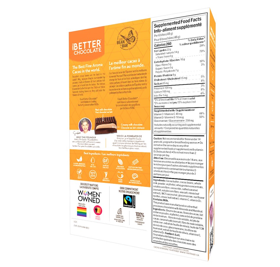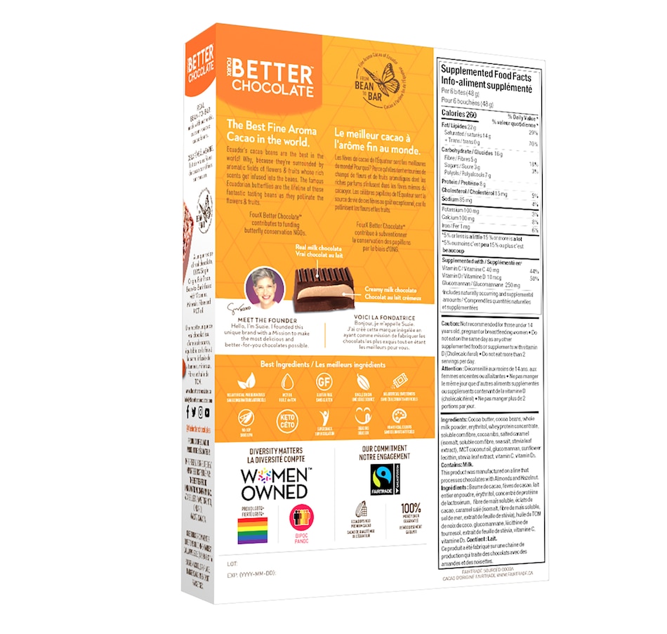 • Bean-to-bar fair-trade process, 100% single origin, keto, Ecuadorian cacao, small-batch roasting, gluten-free, soy-free, women-owned, certified, LGBT friendly company