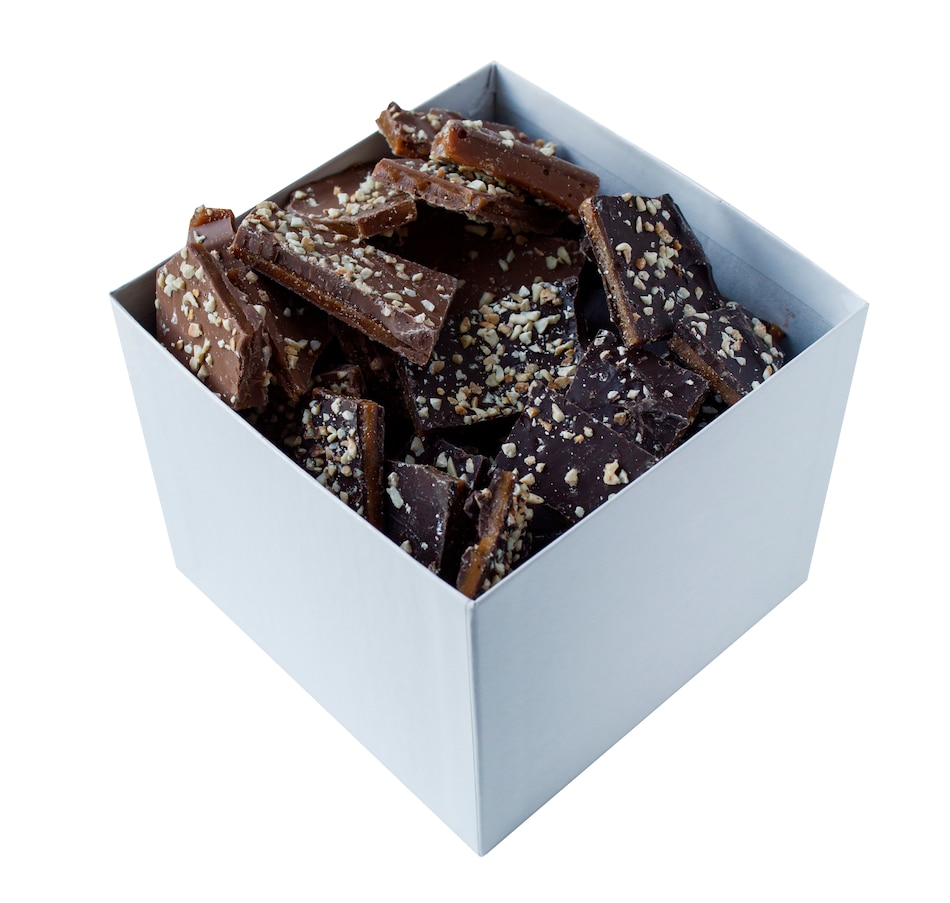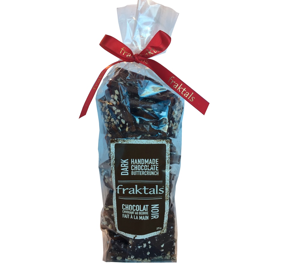Fraktals, a handmade buttercrunch combining ingredients of the highest quality: the blanc 100% pure organic maple syrup, the finest belgium chocolate and cashew nuts. A mix unique in the world! The exquisite taste inside the buttercrunch shows the exceptionally delicate flavour of the brand's blanc 100% pure organic maple syrup, which gives the buttercrunch this subtle vanilla taste. You will need only one bite to redefine the word succulent!