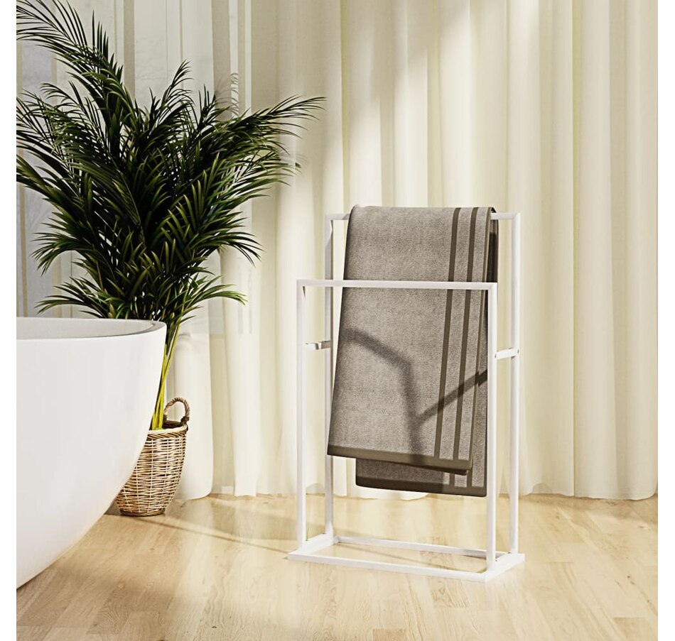 Maximize space in your bathroom while adding stylish looks with this freestanding towel rack! Premium Material: The iron frame of the towel rack ensures sturdiness and stability.Storage Space: The free-standing towel rack, with 2 tiers, provides ample space for hanging towels to keep your bathroom tidy without clutter.Multifunctional Rack: The bathroom storage rack can also be used as a drying rack, accessory organizer, etc.