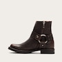 Sturdy and classic, you'll finish every look in fashion-forward style with the Veronica harness short boot from Frye. It offers a classic, authentic silhouette, and snap closure signature harness detailing. There's an inside zip underneath the harness for easy entry, and the rubber leg outsole and top lift offers traction and longevity.