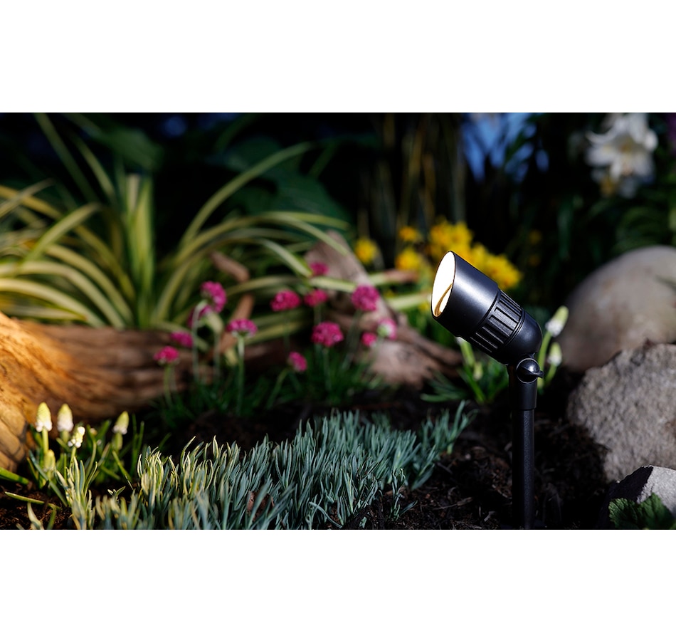 This low voltage LED spotlight is an all new, up to date, contemporary, efficient, and compact design with a black finish and 4 SMD LEDs that provide an amazing 250 lumens of warm white light. The adjustable head allows you to focus the light in almost any position you like, and comes complete with an extra long ground stake for stable mounting into the ground.