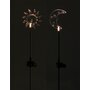 This set of solar lights features one sun stick light and one moon stick light, and comes with ground stakes.