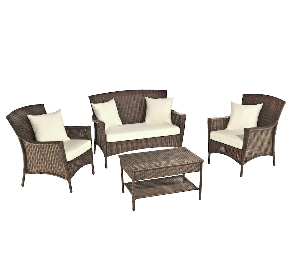 Create an inviting getaway right outside your back door with the Galleon 4-Piece Patio Set. Chairs and loveseat are crafted from richly woven wicker in contemporary style. Gently curved arms and soft, supple cushioning provides for hours of comfortable relaxation.