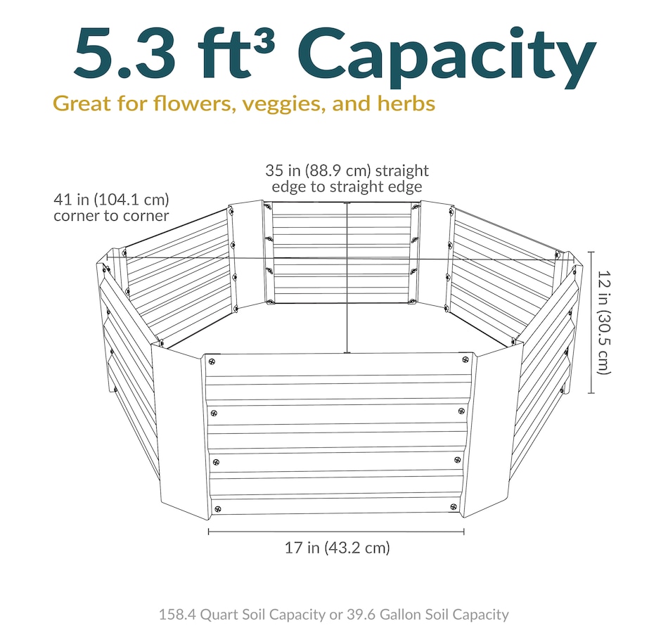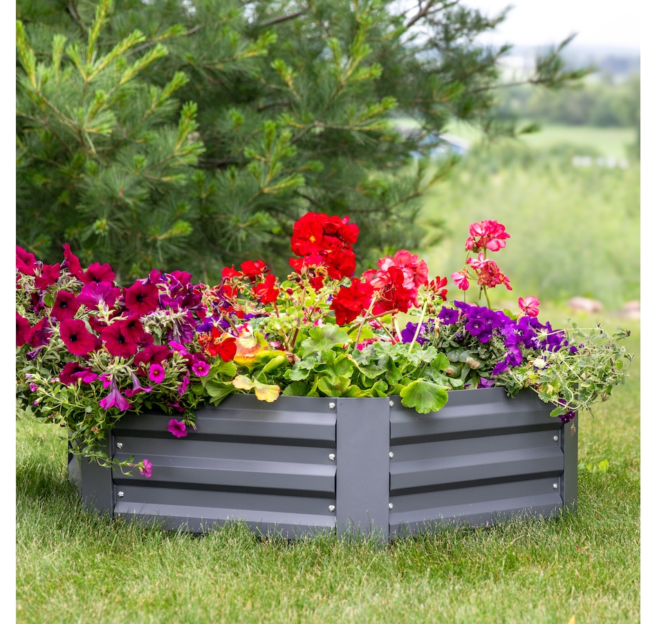 This elegant yet durable hexagon-shaped garden bed is a wonderful addition to any outdoor space. This metal raised garden bed provides a number of benefits for a variety of plants. The bottomless design allows proper drainage for improved root health, and the bed can be filled with whatever type of soil is best for specific plants to create an optimal growing environment. This stylish garden bed features a unique hexagon design that makes it a striking centerpiece for any patio or garden. This sturdy raised garden bed is made of durable galvanized steel for lasting strength and beauty season after season. It is available in two classic colors. This sophisticated metal flower bed is great for any outdoor space including the backyard, garden or patio.