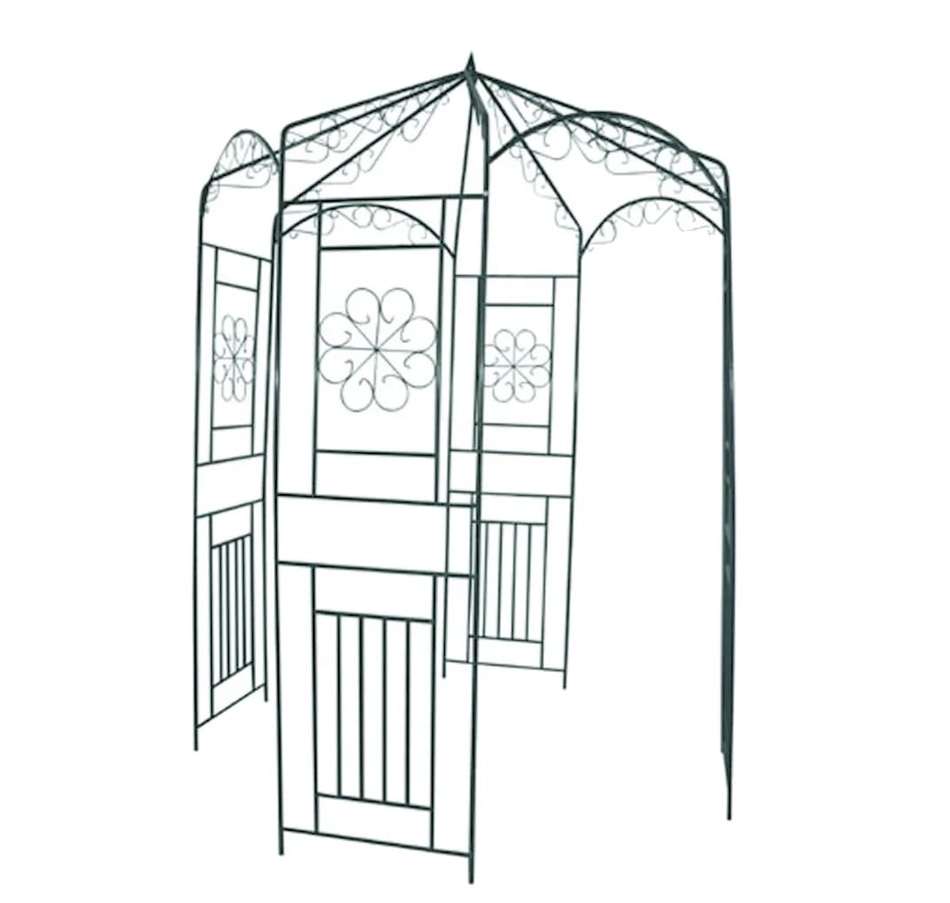 This beautiful, weather-resistant wrought iron garden arch provides a stable base for rose bushes and other climbing plants. The pretty ornaments give the arch a romantic feel and since the rose bush adopts a pavilion design, it is perfect for providing shade in summer. The metal arch measures 250 cm high and 160 cm wide , measured from one end to the other.