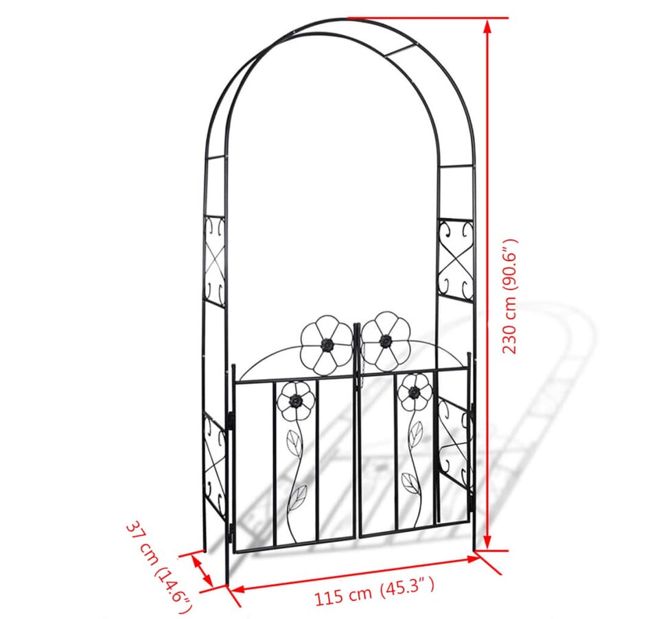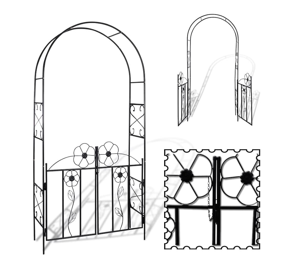 This high quality garden gate/arch, with elegant floral details, is a perfect choice for rose bushes and climbing plants. It is certainly an attractive feature in any garden, patio or deck. Made of durable iron, this weather-resistant garden arch with doors is strong enough to support the most vigorous climbing plants. This garden arch can be installed and erected easily.
