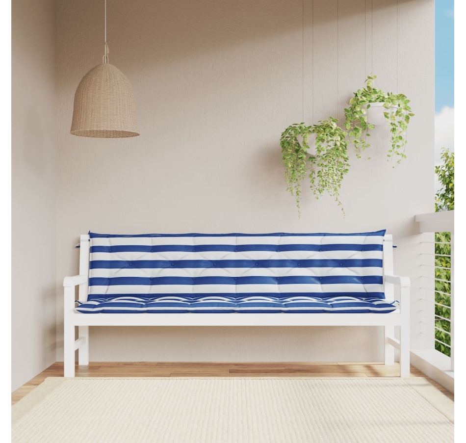 Instantly give your home a new look with these garden bench cushions! DURABLE FABRIC: Polyester is a synthetic material known for its UV and tensile resistance. Polyester is water resistant, making it the ideal choice for wet or rainy conditions, and is also easy to clean.Soft Filling: The outdoor cushion is filled with hollow fiber for ultra seating comfort -soft and optimal. The bench cushion returns to its original shape after each use.Wide application: the cushion is not only suitable for outdoor use such as garden and patio furniture, but can also be used indoors as a family bench cushion and living room seat cushion. Besides, it is a nice decoration to give your home a new look.Non-slip design: Well-designed ropes make it easy to attach the seat cushion to furniture and keep it neatly and securely. Good to know: The product is vacuum packed, so it needs some time to expand and return to its initial shape.